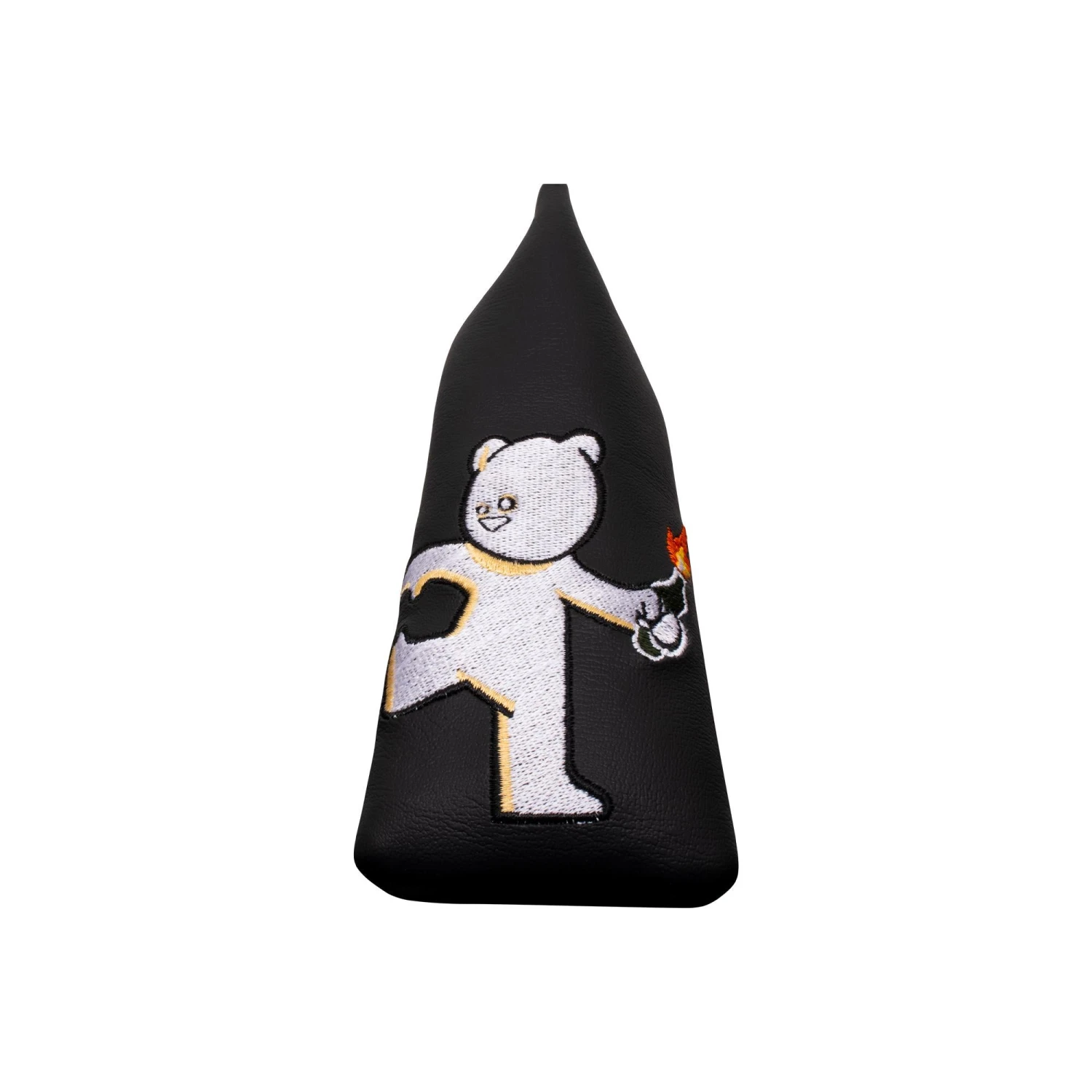This eye-catching blade putter headcover from Scott Readman Concepts features one of the most prominent works of street art by the infamous Bristolian Banksy, the iconic ‘Teddy Bear Bomber’ embroidered on top of the padded & lined putter headcover. This headcover is guaranteed to protect your driver whilst also bring a stand-out look to your golf bag..