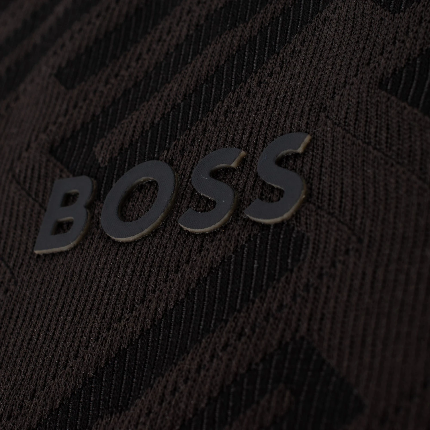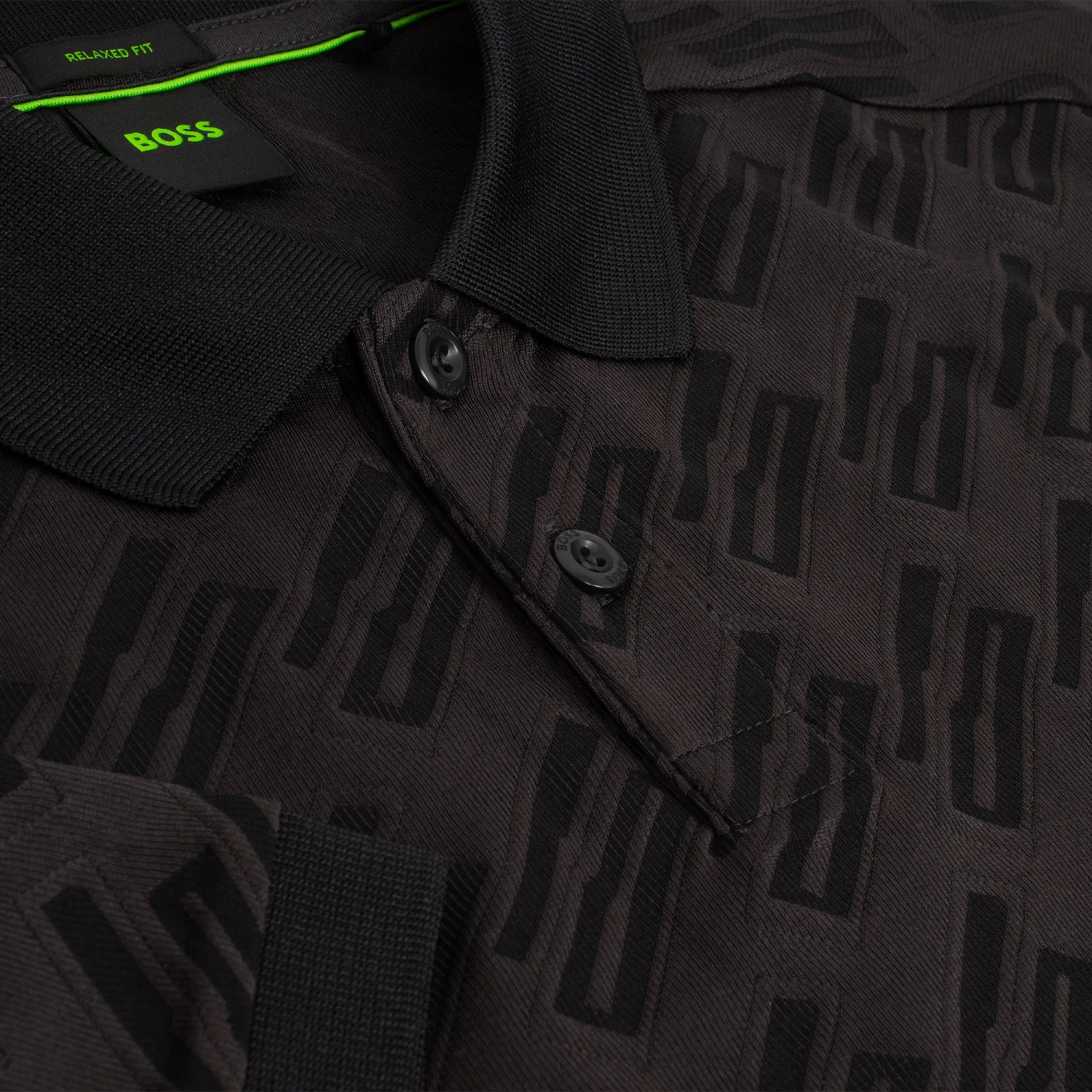The Pirax is a contemporary relaxed-fit polo shirt featuring a unique all-over monogram jacquard which provides a distinctive look which can be worn both on and off the golf course. Featuring flat-knit collar & cuffs, as well as the iconic BOSS logo printed at the left chest, the Pirax is a statement polo, the perfect addition to your wardrobe for the coming season.