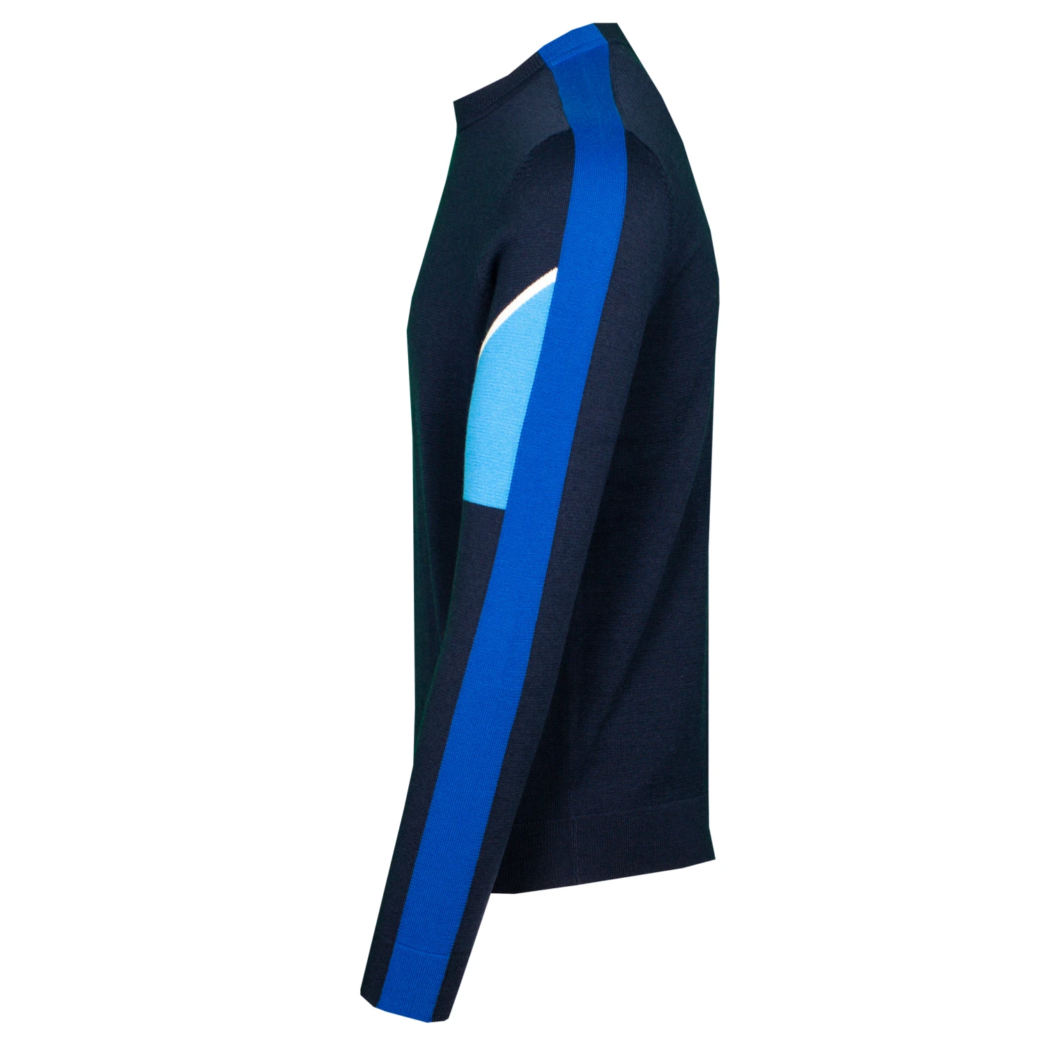 A crew-neck sweater by BOSS Menswear with moisture control. Crafted in super-soft recycled yarns blended with virgin wool, this sweater is designed with sporty colour-blocking and features a curved logo at the centre chest. The inner collar is finished with a contrast trim for typical attention to detail.