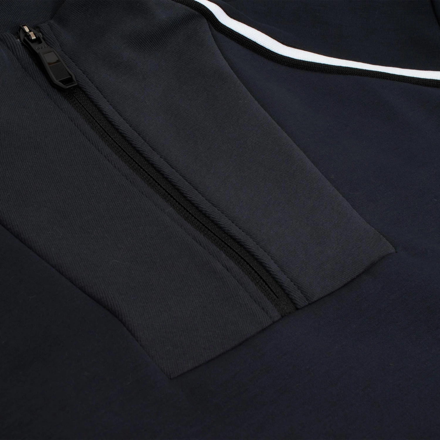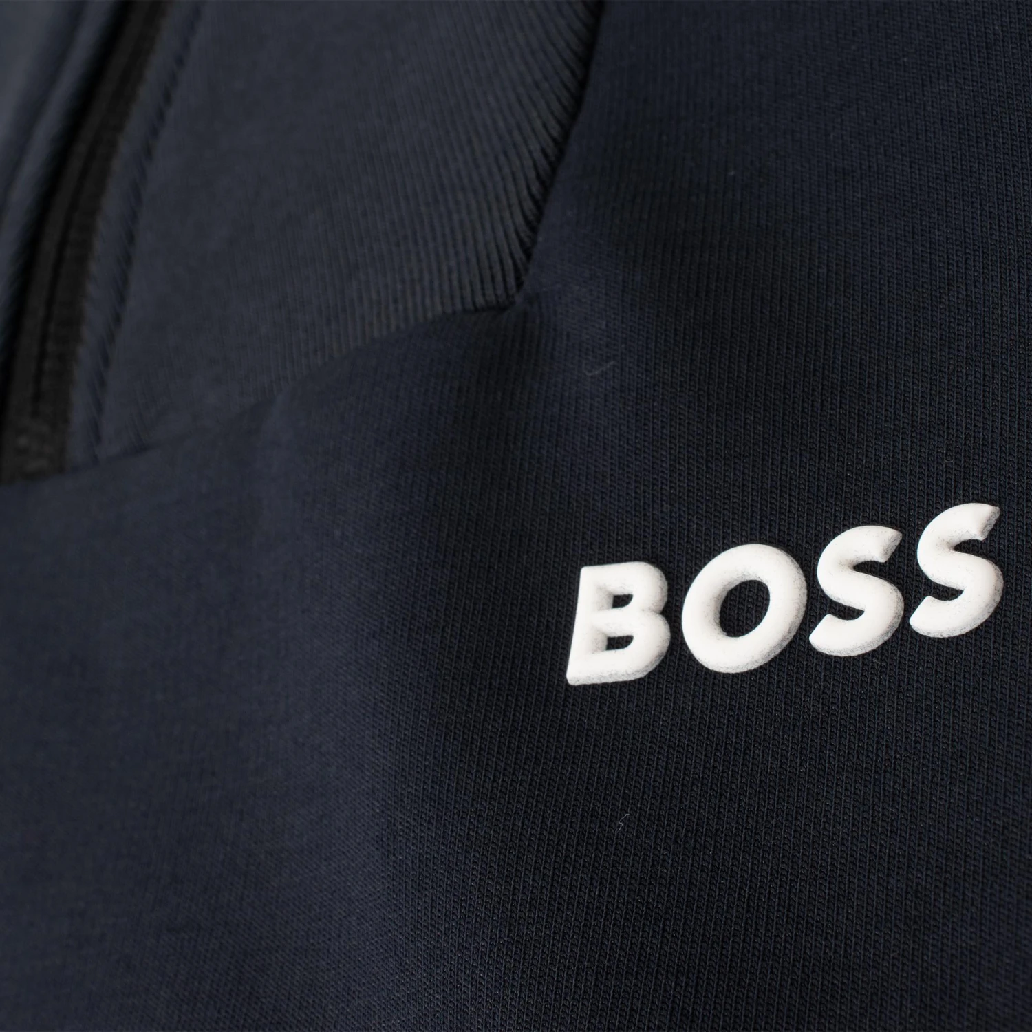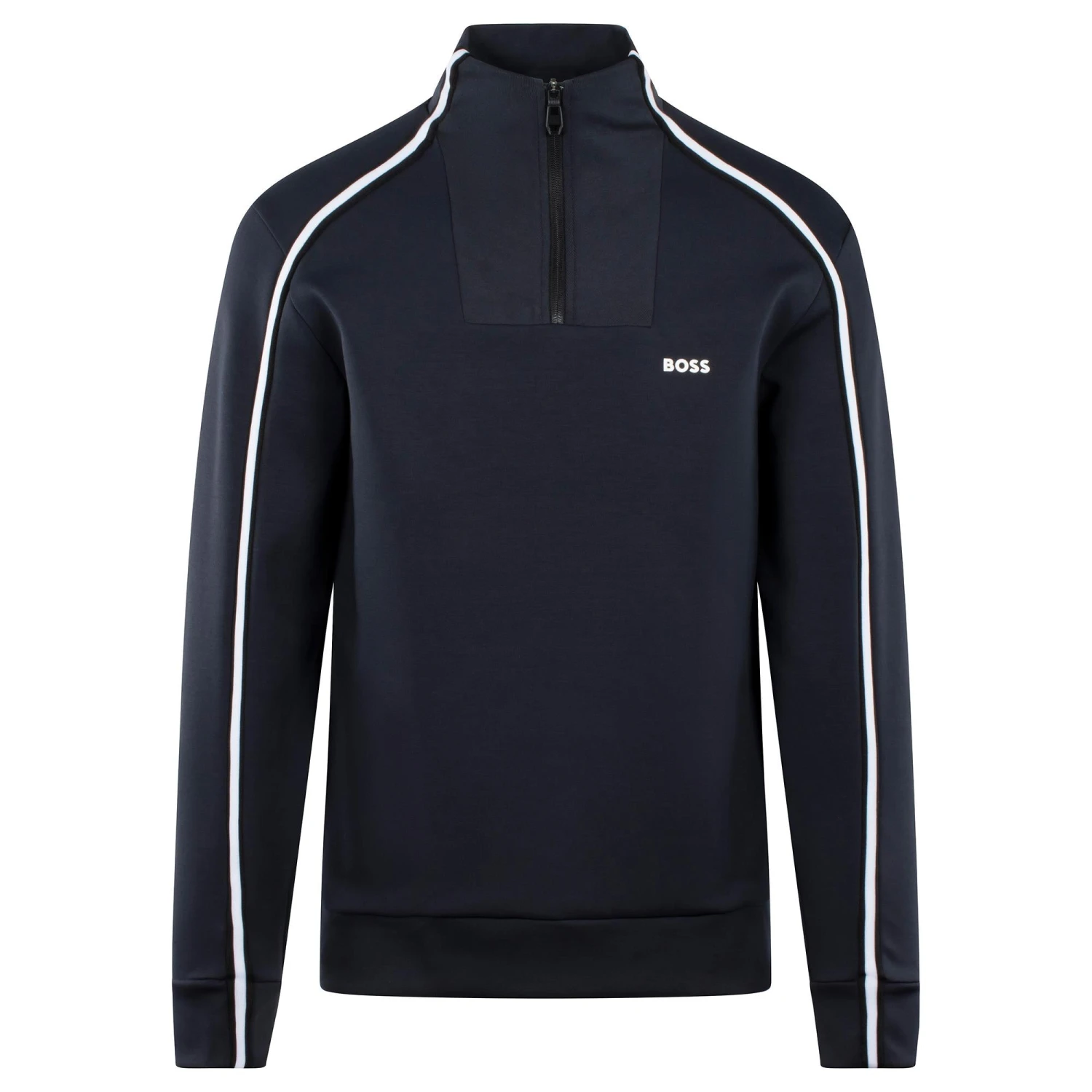 The Sweat 1 quarter zip sweater from BOSS menswear offers trademark versatility and is perfect for use both on & off the golf course. The stylish design is elevated by the contrast taped detailing which runs down the collar & sleeves, whilst the iconic BOSS logo is printed at the chest, adding further detailing to this uber fashionable mens sweater. Constructed from a mid-weight fabric that ensures both warmth and comfort, the Sweat 1 is also constructed from a stretch material that will not compromise the wearers freedom of movement whilst swinging, making it the perfect layering piece whatever the occasion and whatever the conditions.