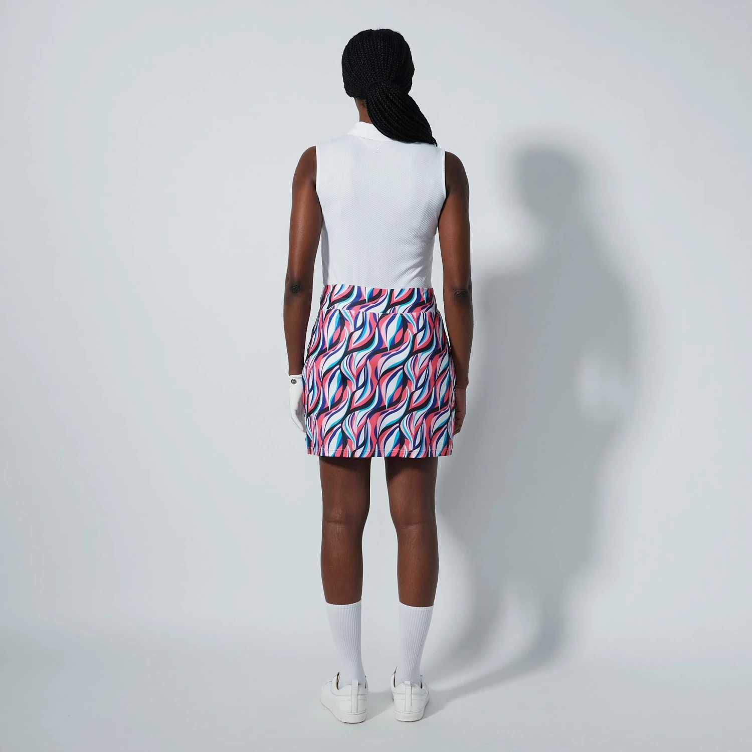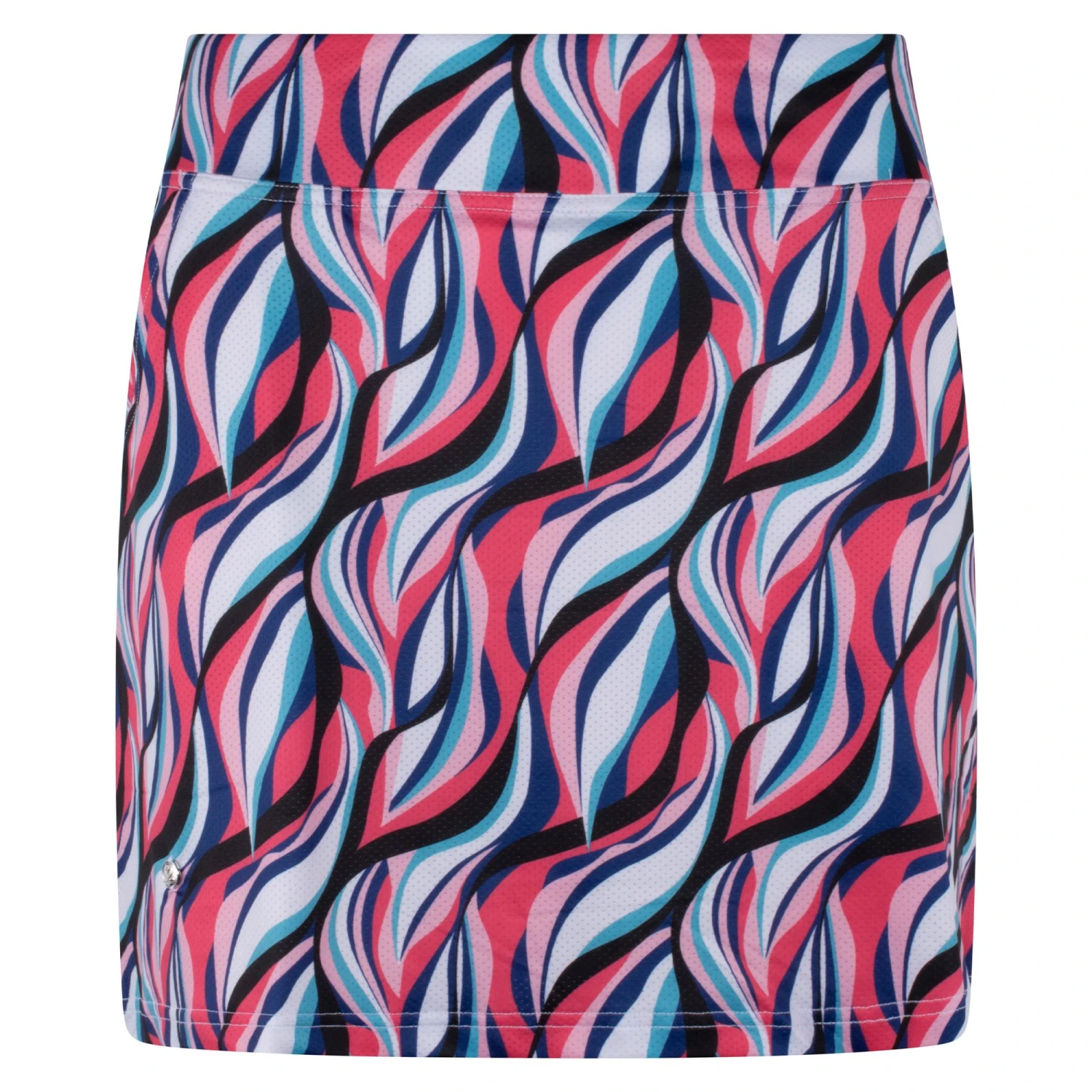 The Carira skort from Daily Sports is a comfortable golf skirt in an all-over seasonal print which is sure to turn heads on the course. Constructed from a stretchy, quick-drying material that ensures the wearer with comfort and freedom of movement – Perfect for long days on the course. The flyless waistband creates a smooth feel which further enhances comfort whilst the skirt also features a small pocket in the waistband and inner shorts for added functionality. Pair this skort with other elements from the Illusion wave collection for a statement look this season.