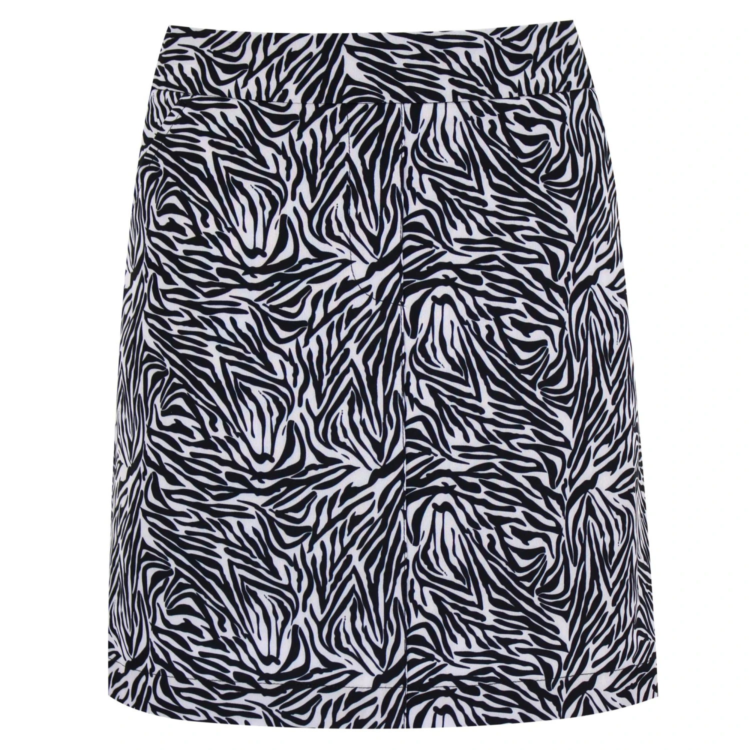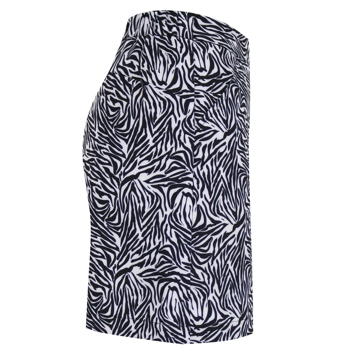 Dressy in a jiffy with zebra print pull-on skirt Kiara Sense skirt 45 cm. Zebra print pull-on skirt in a recycled material. Looks as good on the golf course as it does on an evening out, with no loss of functionality. The lightweight fabric is wind-resistant, quick-drying and non-crease. Inner shorts give you total freedom of movement, and you have no fewer than three pockets at your disposal. A real gem in your golf wardrobe.