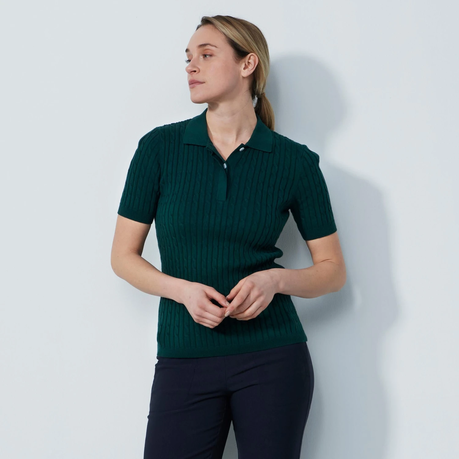 The Madelene is a preppy cable knit polo shirt from Daily Sports with short sleeves, a V-neck and hidden button placket. The shirt is cut in a slim fit and made from a soft cotton material with a hint of cashmere providing the wearer unparalleled levels of both comfort & warmth whether worn on or off the golf course. A classic piece for all occasions, the Madelene is a versatile polo that is sure to become a wardrobe essential.