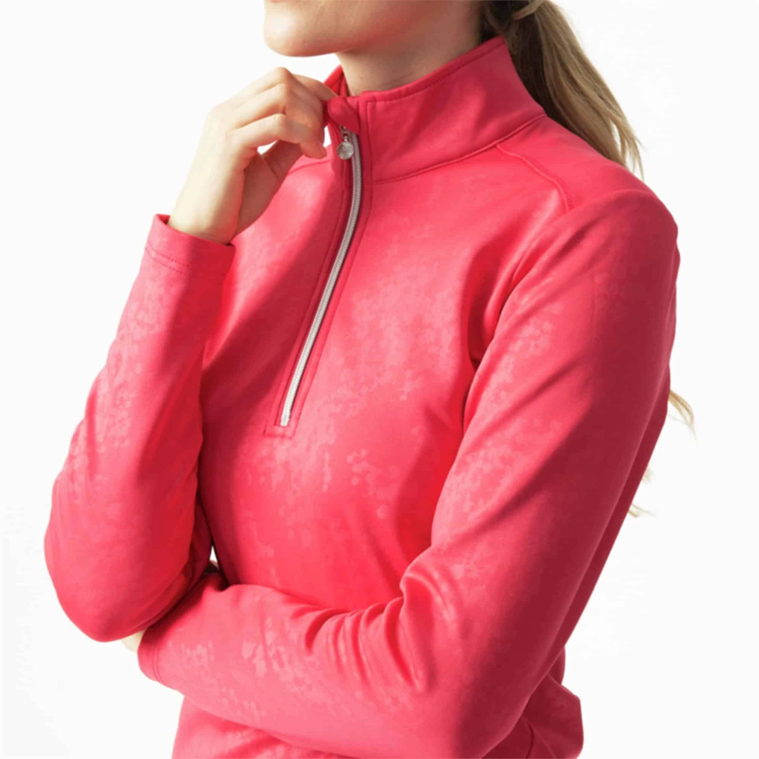 Miranda is a long-sleeved functional top in stretchy lightweight fabric. The printed pattern in the same shade adds a touch of character to this otherwise understated design. The top features a stand-up collar with zip and is made from moisture-wicking and quick-dry functional fabric, making the Miranda the perfect top for on and off the golf course.