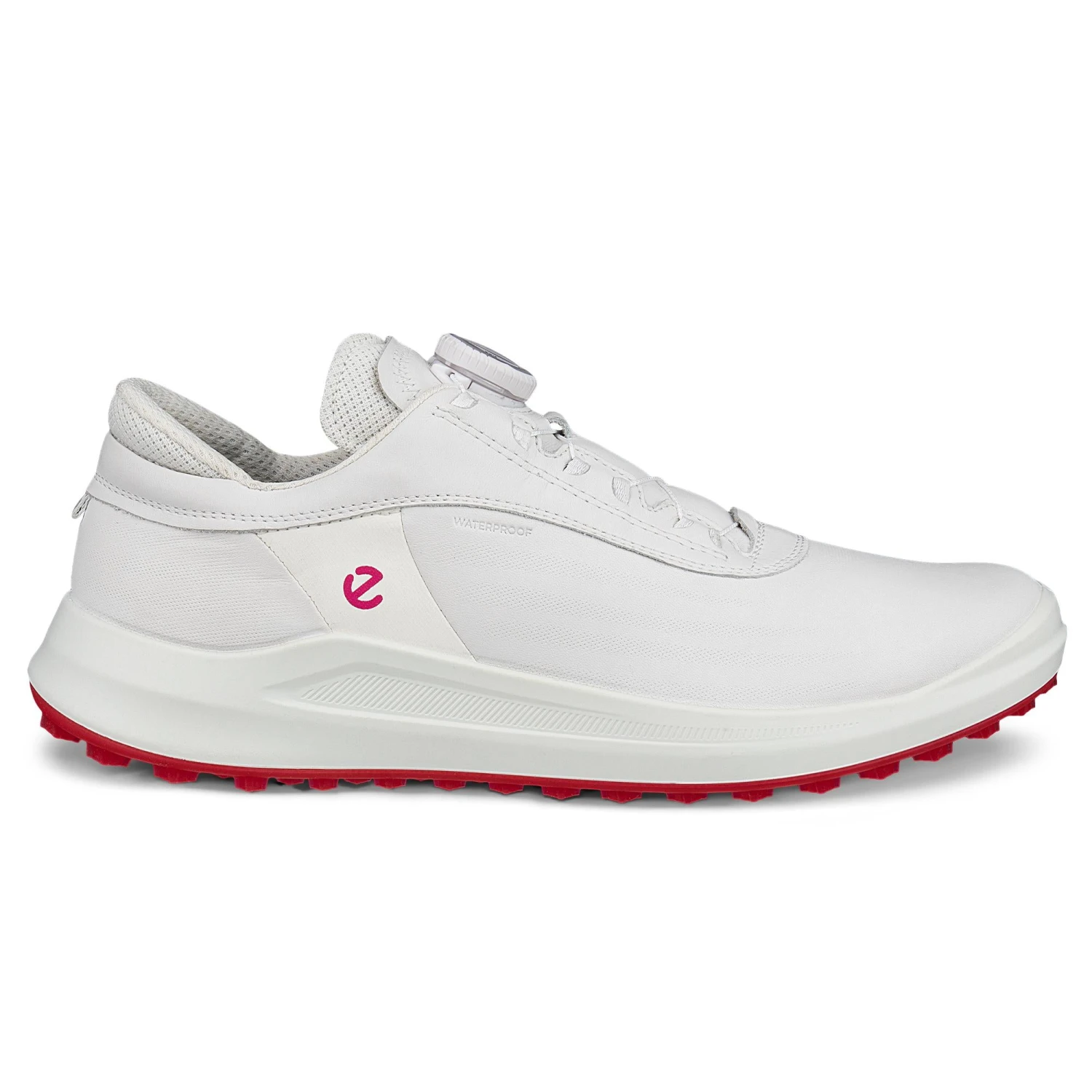 Refresh your golfing style with this special edition of the ECCO Core ladies golf shoe which is available exclusively from us! Featuring all of ECCO’s advanced performance technologies which combine to provide a stylish shoe with all of the functionality expected from ECCO shoes. The new casual upper, which is crafted from breathable and premium ECCO leather, has a colour pop side piece and a colour pop outsole for a contemporary, urban aesthetic. The update includes the introduction of the state-of-the-art ECCO-TEX waterproof membrane which will keep your foot dry and comfortable in wet conditions. Lightweight and flexible, the Core golf shoe is set on the progressive E-DTS™ TWIST outsole for durability and multi-directional traction. The BOA® Fit System allows for simple adjustments and an easy on and off, further enhancing comfort levels.