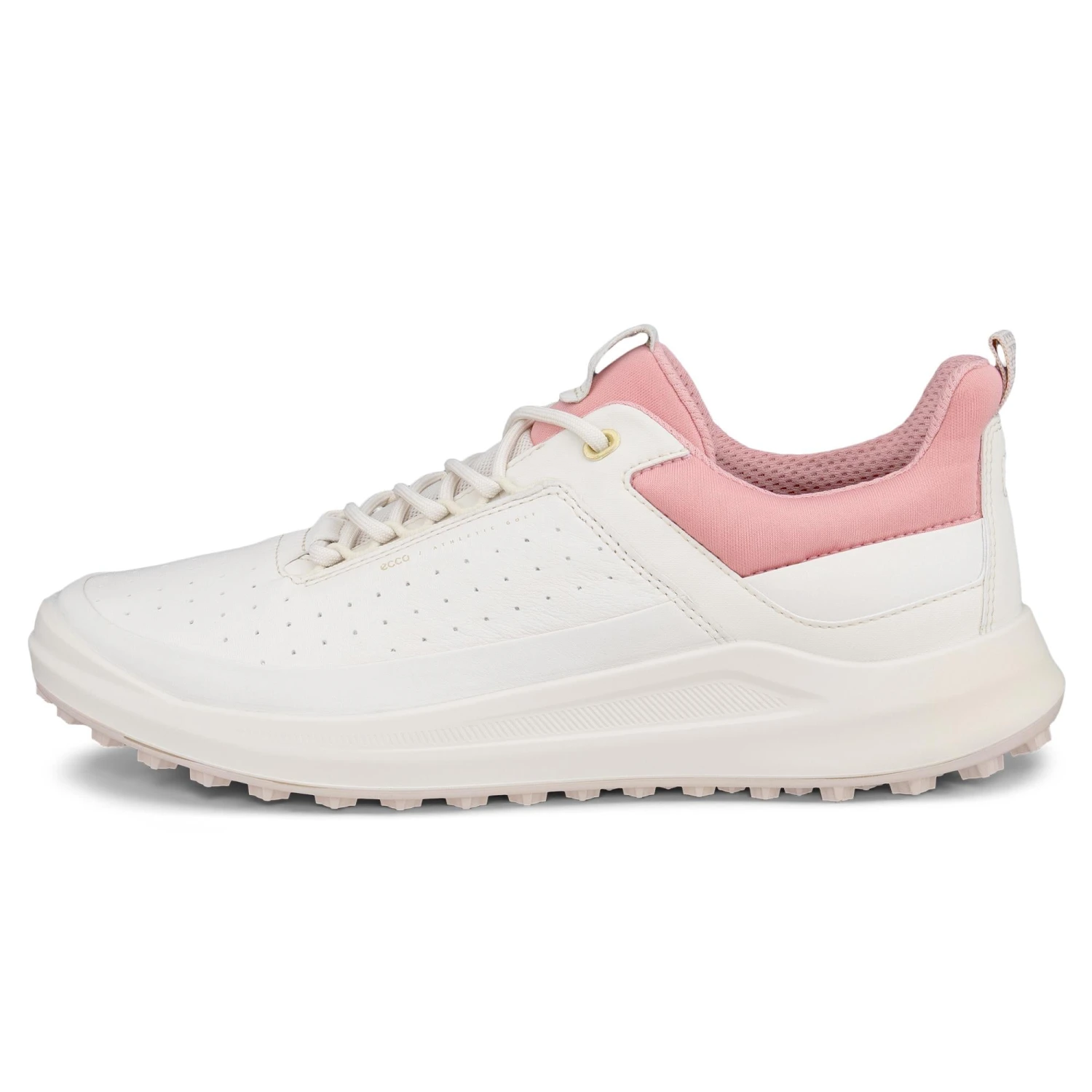 Refresh your golfing style with this special edition of the ECCO Core ladies golf shoe which is available exclusivlely from us! Featuring all of ECCO’s advanced performance technologies which combine to provide a stylish shoe with all of the functionality expected from ECCO shoes. The new casual upper, which is crafted from breathable and premium ECCO leather, has a colour pop side piece and a colour pop outsole for a contemporary, urban aesthetic. The update includes the introduction of the state-of-the-art ECCO-TEX waterproof membrane which will keep your foot dry and comfortable in wet conditions. Lightweight and flexible, the Core golf shoe is set on the progressive E-DTS™ TWIST outsole for durability and multi-directional traction.