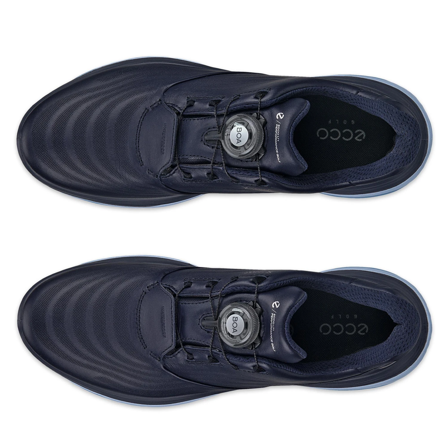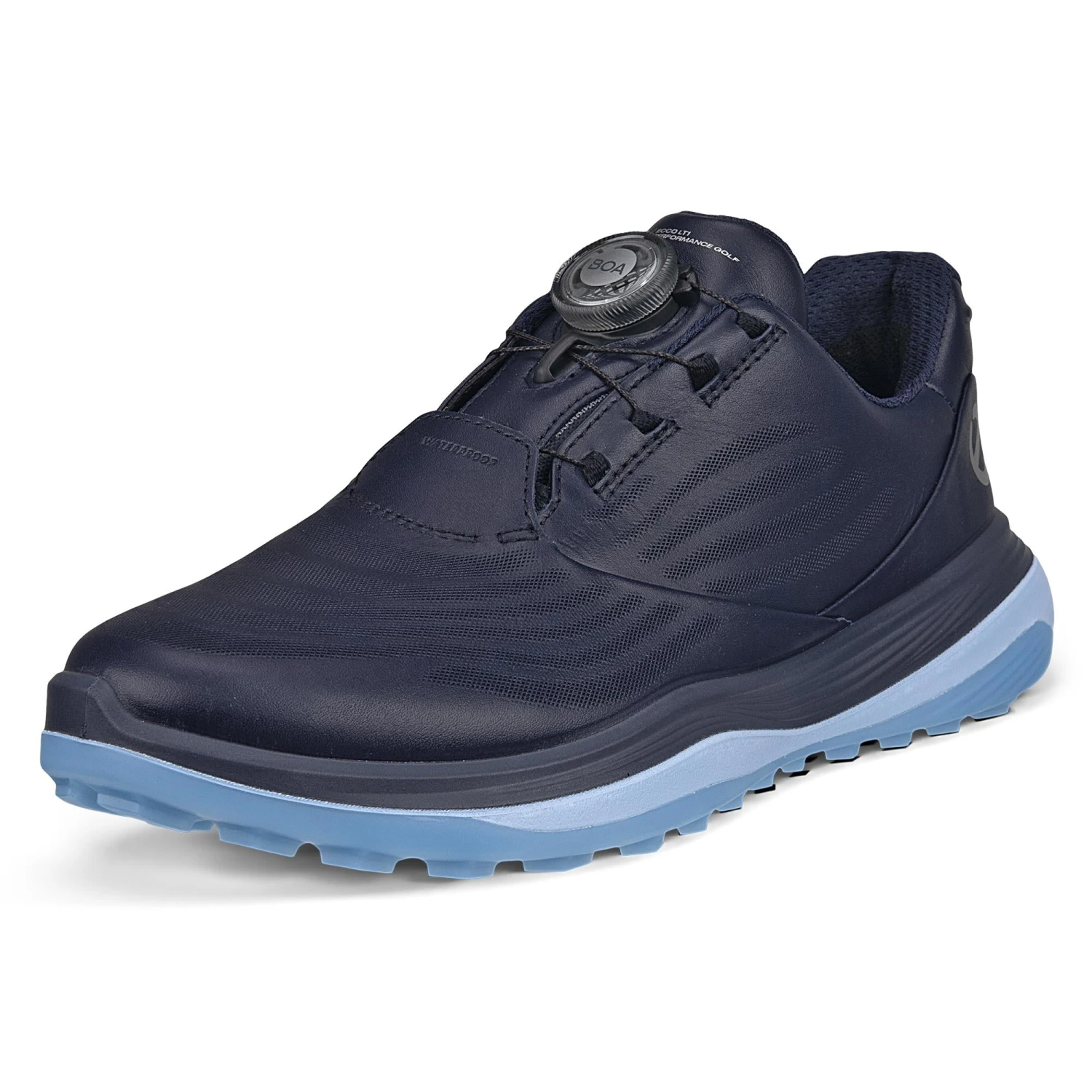 Ultra-light, state-of-the-art foam supplies outstanding, game-changing rebound and softness in the ECCO GOLF LT1. This new hybrid, spikeless ladies golf shoe has been created using our new ECCO LYTR, made from an advanced bounce and rebound material that is embedded in the sole via the signature ECCO FLUIDFORM Direct Comfort Technology. The foam is seamlessly combined in the midsole with ECCO’s soft PHORENE, which provides contoured comfort, stability and a long-lasting integral bond to the leather upper. For superb comfort and performance, each zone – the forefoot, midfoot and heel – has targeted amounts of the two materials. The visible shank delivers low-to-the ground stability and the new E-DTS NET outsole is a fresh twist on the ECCO DYNAMIC TRACTION SYSTEM and provides multi-directional traction and durability. While the waterproof membrane, exclusively developed for ECCO, helps to keep the foot dry in wet conditions, the clean, sneaker-style aesthetic and ECCO leather add to the premium look and feel.