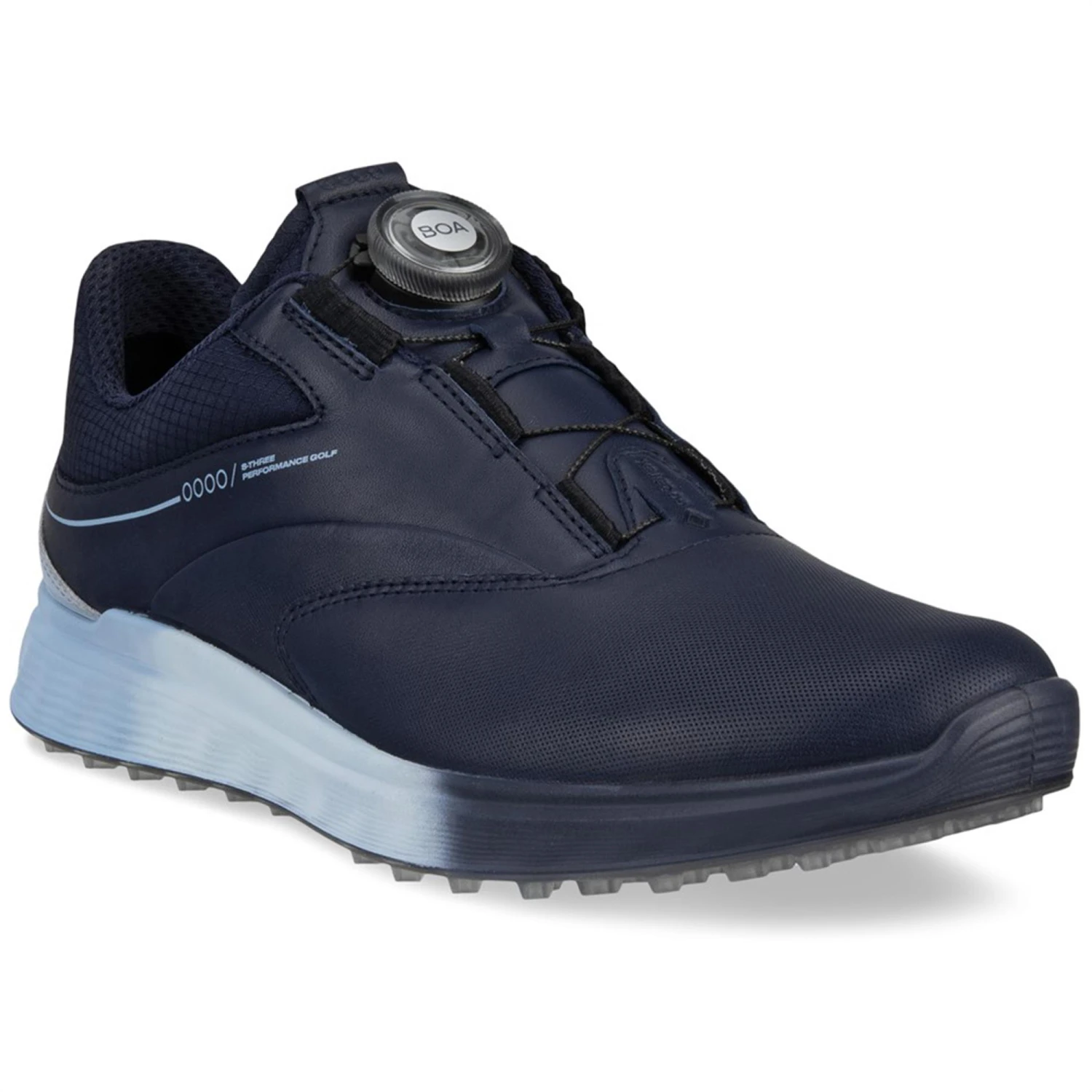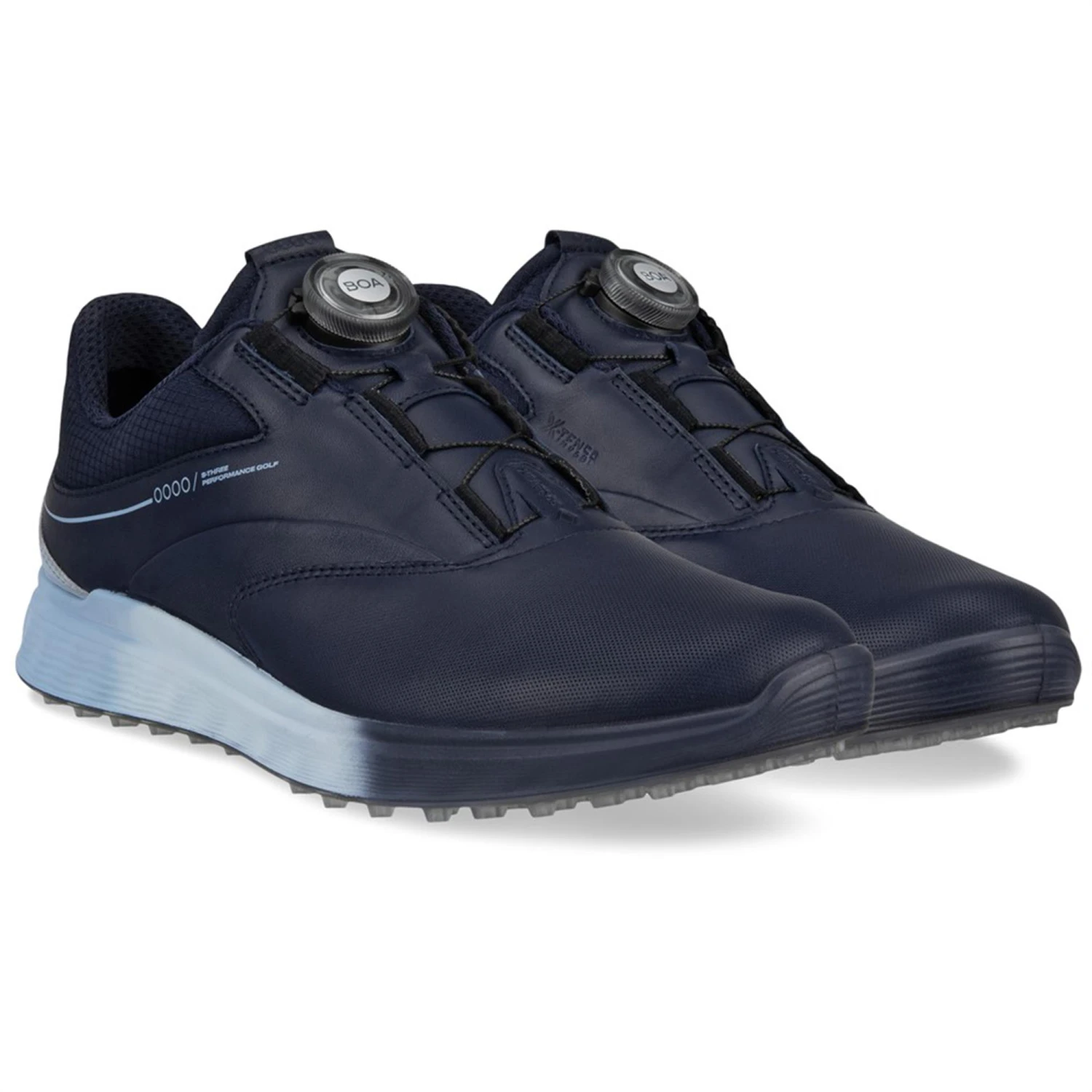 The best-selling S-Three ladies golf shoe has been refresehed for this season with a new upper design and innovative technology, the waterproof S-Three blends superior performance with modern style for on course comfort as well as eye-catching style. Embossed and printed details, and a bold ECCO logo at the heel, contribute to the premium aesthetic of a women’s hybrid golf shoe that has been upgraded with X-TENSA invisible technology for extra stability. The E-DTS® outsole provides excellent traction while GORE-TEX Technology supplies 100% waterproof protection. The ECCO ZONAL FLUIDFORM™ innovation creates three distinct zones of rigidity in the midsole, ensuring the ideal balance of cushioning and stability. The BOA® Fit System delivers micro-adjustable precision fit and is engineered to perform in any conditions.
