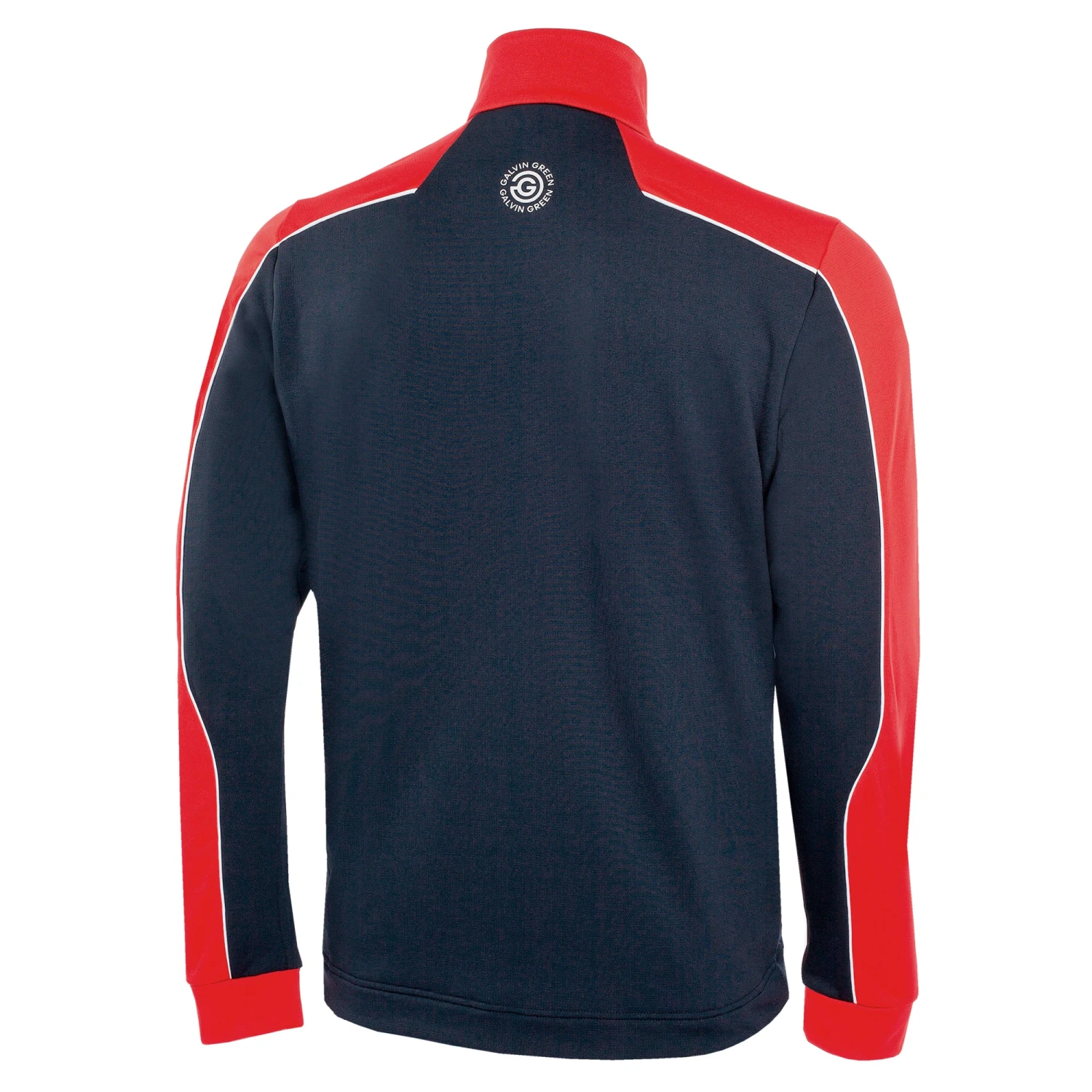 The Dave from Galvin Green has been carefully crafted from an extremely breathable, quick dry material which is also soft, stretchy, and comfortable. The bluesign™ approved fabric is made from recycled polyester, is easy to care for, and is highly crease resistant. This half zip mid layer with piping and colour contrasting is rated with warming effect #2, offering excellent thermal insulation in cool and cold conditions. With raglan sleeve piping, two-tone colour options, and an innovative chest pocket — Dave is a statement style on the golf course and beyond. A high-tech mid layer is an essential piece in any golfer’s wardrobe, acting as a sweater on warm days, and providing thermal insulation underneath a jacket when it is cold.