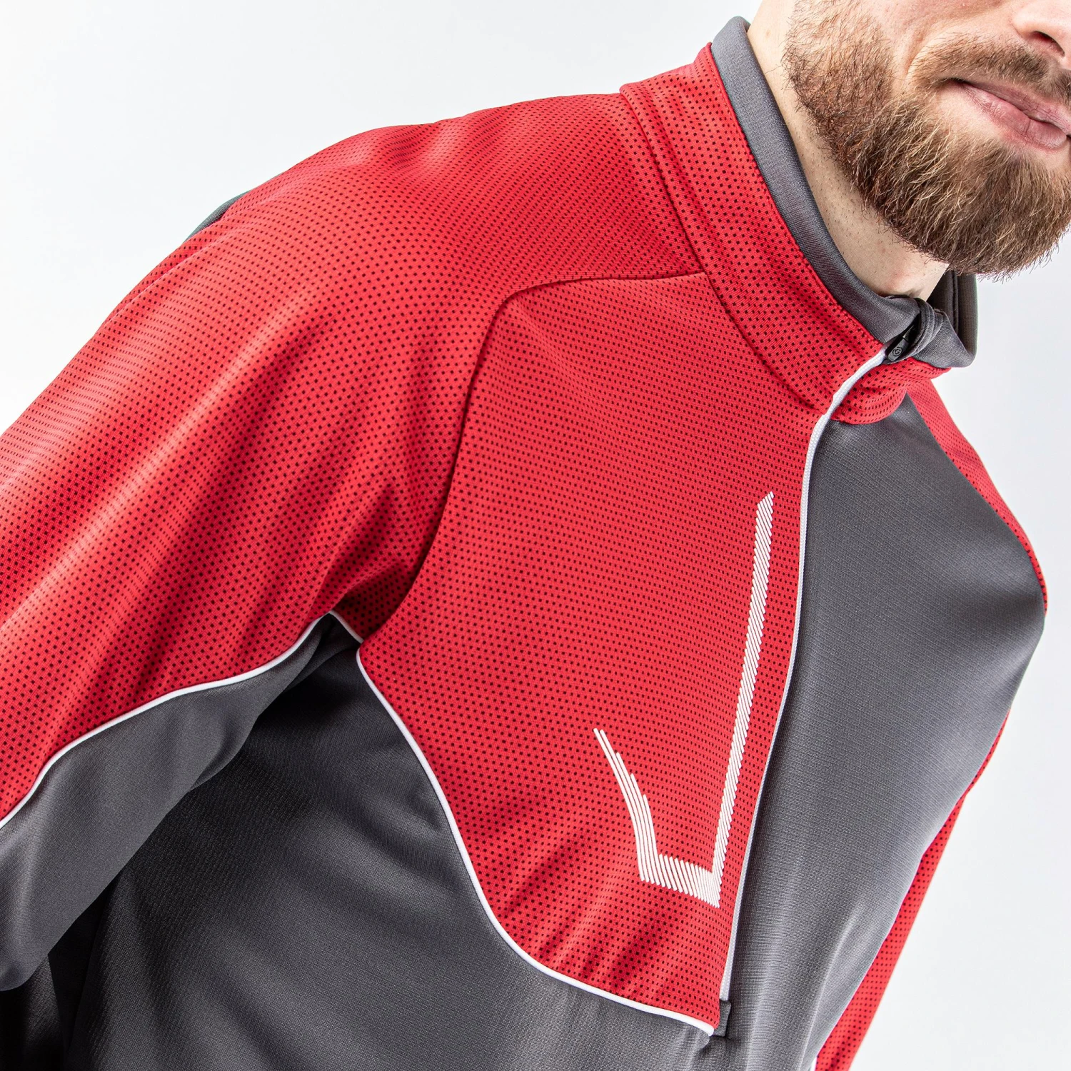 The ever-popular Daxton half zip golf sweater from Galvin Green is a durable, breathable, easy care mid layer designed to provide outstanding thermal insulation. Made from Galvin Green’s INSULA™ fabric, this is a soft, stretchy garment that is extremely breathable and warming in cold conditions. With front piping and a printed chest graphic, Daxton is a stylish piece that can be worn on and off the golf course. The Daxton is available in a wide range of colours and has been designed to match bottoms, jackets, and shirts from the men’s collection. This half zip golf sweater belongs to a new eco-generation of INSULA™ bluesign® approved fabrics made 100% from recycled plastic bottles.
