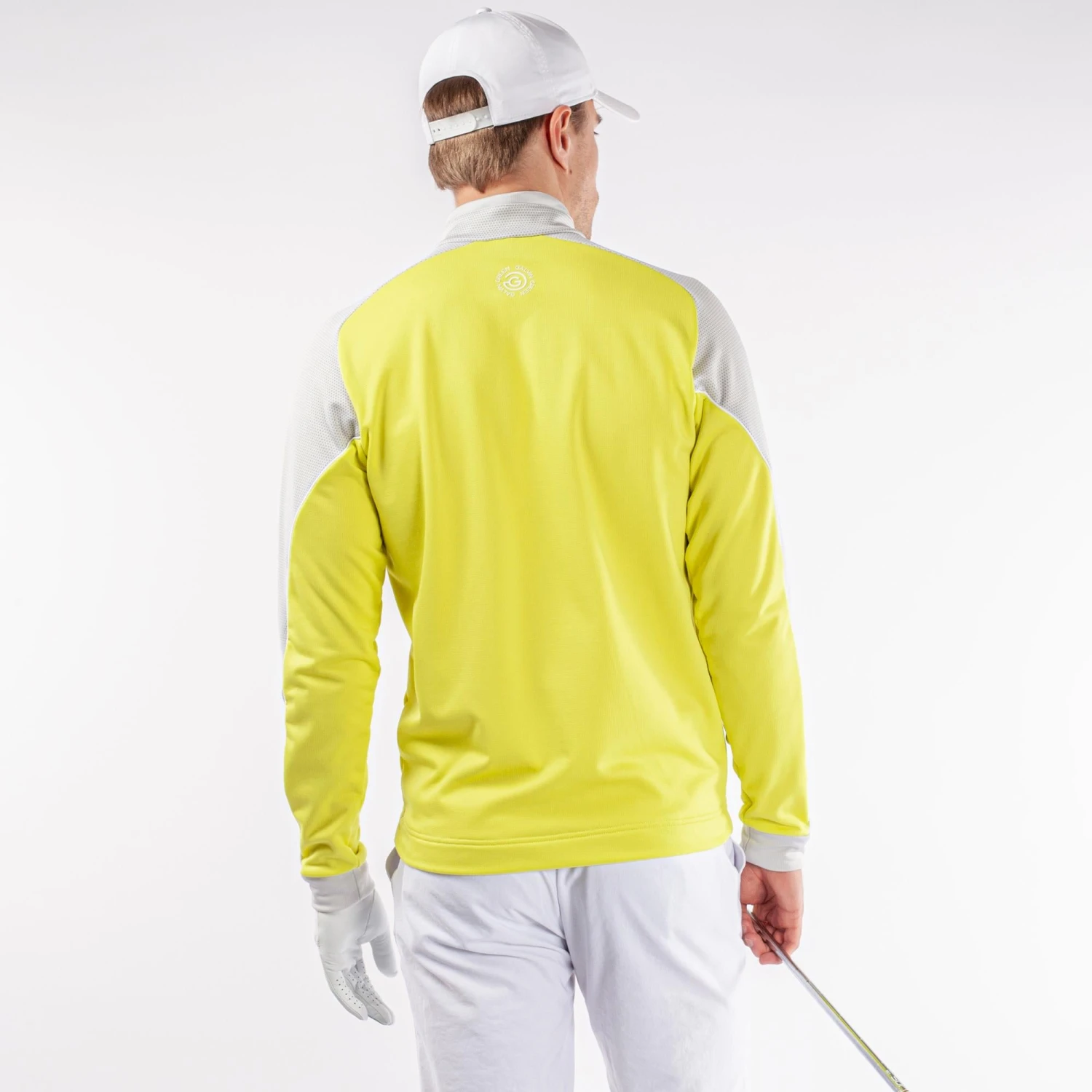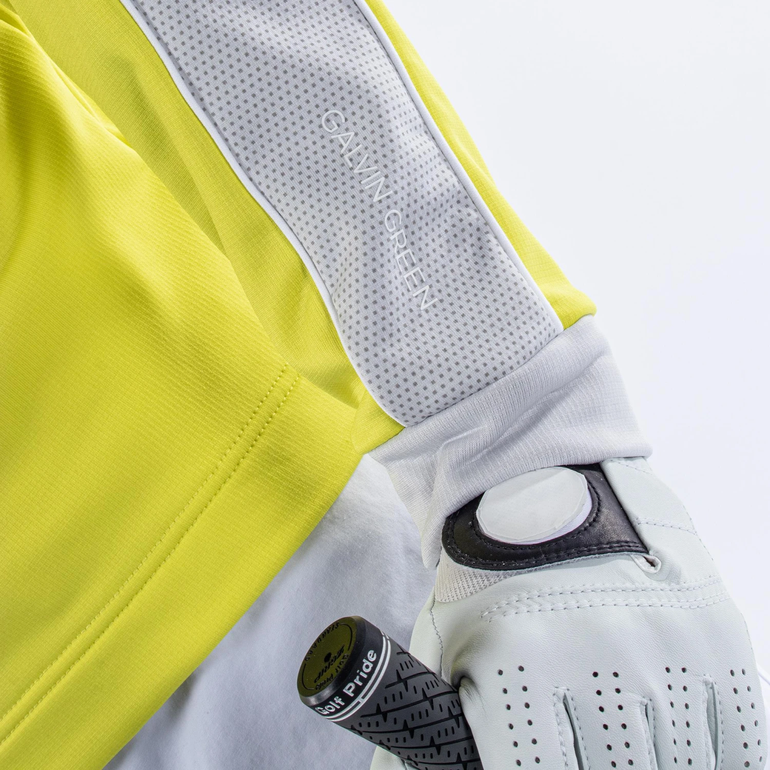 The ever-popular Daxton half zip golf sweater from Galvin Green is a durable, breathable, easy care mid layer designed to provide outstanding thermal insulation. Made from Galvin Green’s INSULA™ fabric, this is a soft, stretchy garment that is extremely breathable and warming in cold conditions. With front piping and a printed chest graphic, Daxton is a stylish piece that can be worn on and off the golf course. The Daxton is available in a wide range of colours and has been designed to match bottoms, jackets, and shirts from the men’s collection. This half zip golf sweater belongs to a new eco-generation of INSULA™ bluesign® approved fabrics made 100% from recycled plastic bottles.
