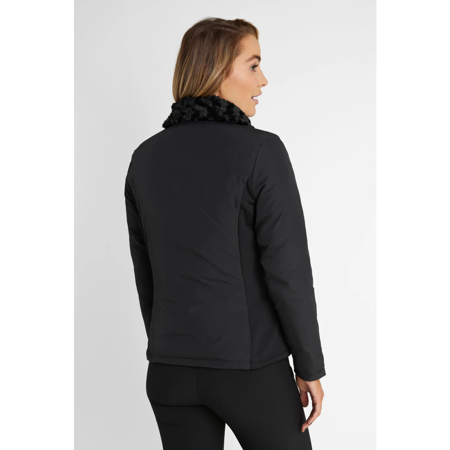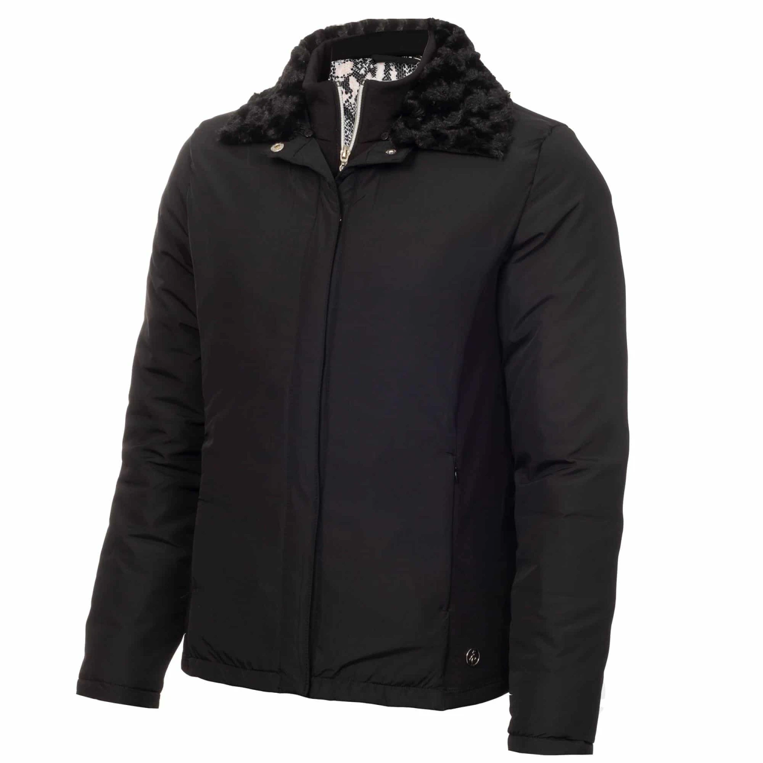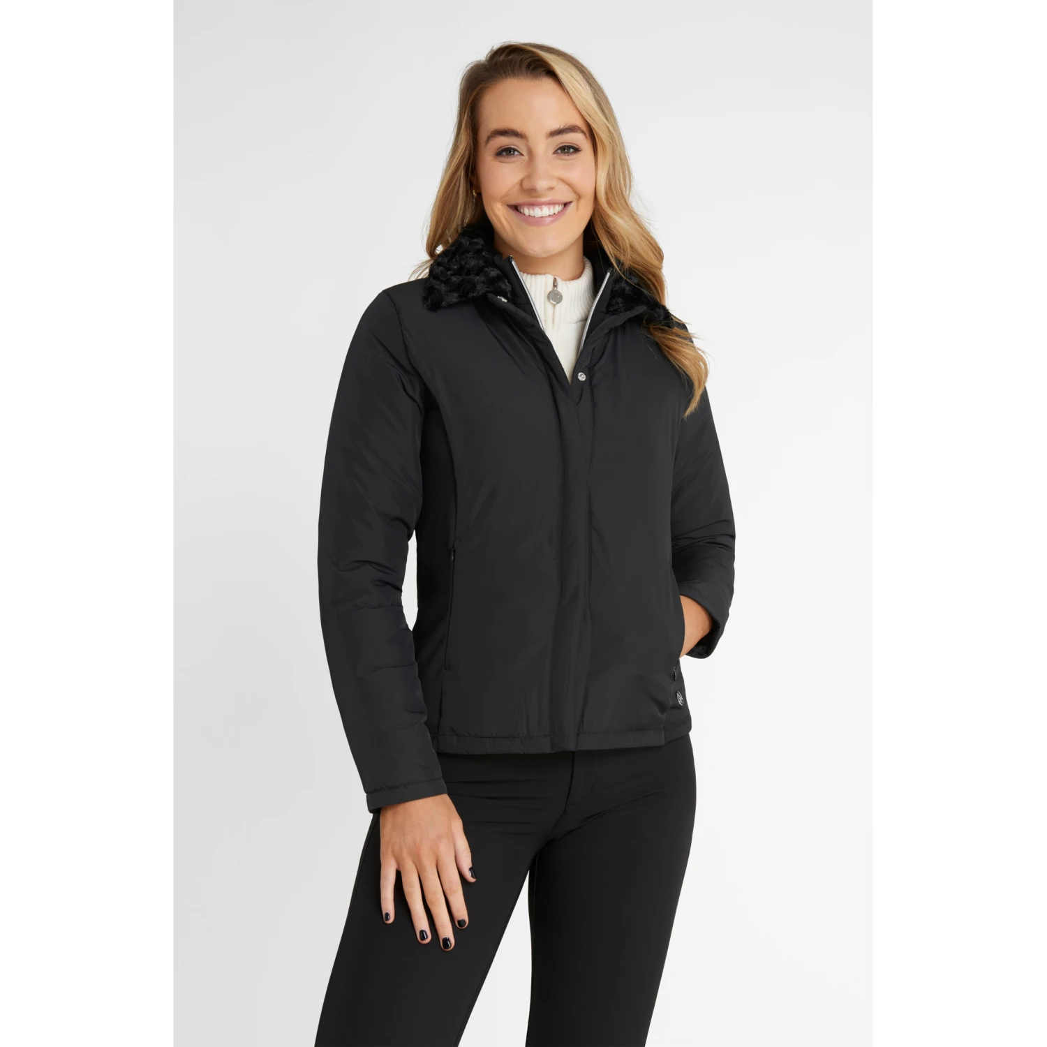 A feature packet padded jacket to liven up the darkest winter day Green Lambs Georgia Jacket will wow both on and off the course. The fully detachable fun fur collar adds a chic edge to your outfit and the side stretch panels keep the comfort levels high. The padded fabric provides wind and water resistance.