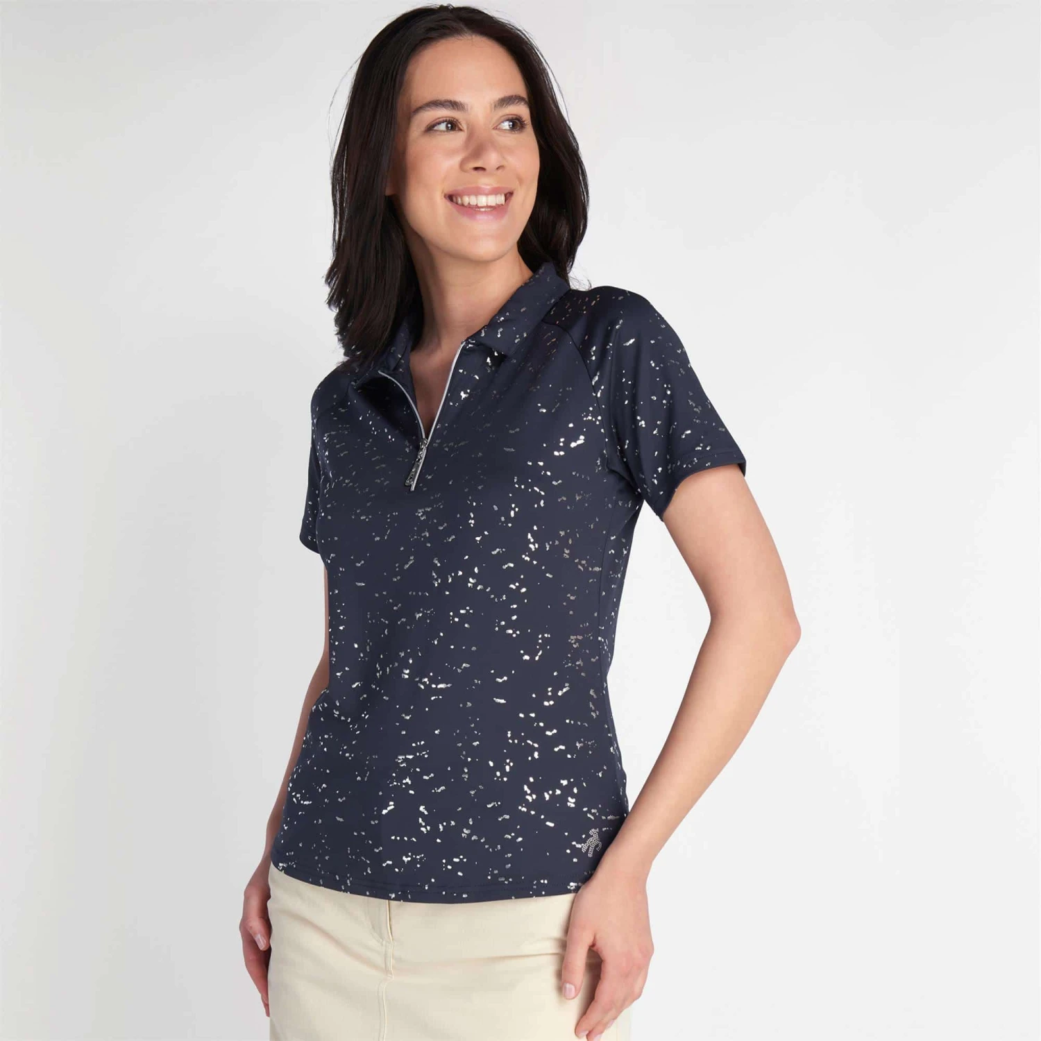 Green Lamb Katlynne Silver Foil Polo Shirt Navy