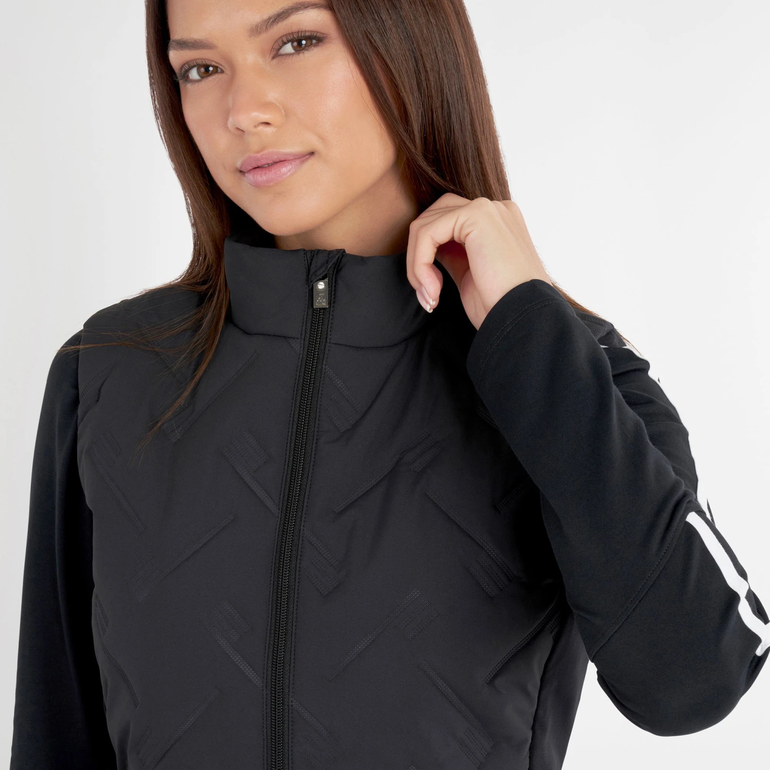 Elevate your style this season with the uber chic Monique Hybrid Gilet from Green Lamb. This eye-catching full-zip gilet showcases a striking sonic welded quilting pattern. The Monique ensures the wearer is able to play without with unrestricted freedom of movement whilst also guaranteeing both warmth and comfort whether worn on or off the golf course. The feather light soft padding is a joy to wear, and the padded fabric is wind and water resistant. Soft, stretchy side panels have a cosy fleece backing for a snug feel and subtle detailing is provided by the Green Lamb logo plaque at the back neck and the branded zipper puller, all of which combine to ensure the Monique will become your go-to outerwear this season.