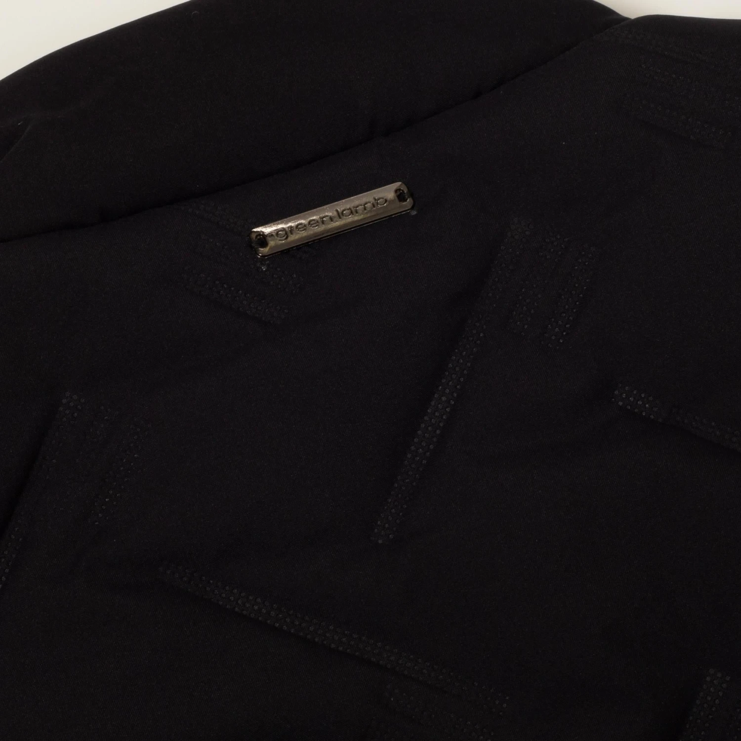 - Two-way front zip with shiny gunmetal Green Lamb zipper puller