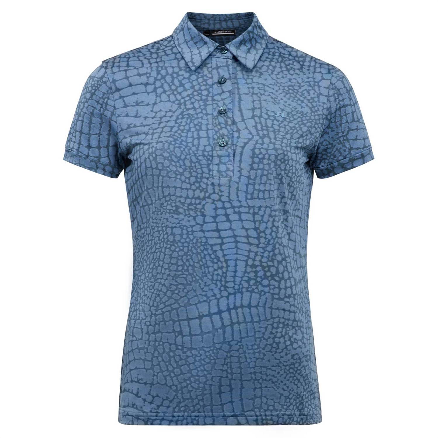 J Lindeberg Alaya is a premium golf polo ,crafted in a smooth and stretchy lightweight Jacquard fabric ,with an all micro croc print for an on fashion look ,finished with a 4 button opening and a contrast silicone bridge on left chest . Fabric is Oekotex certified.