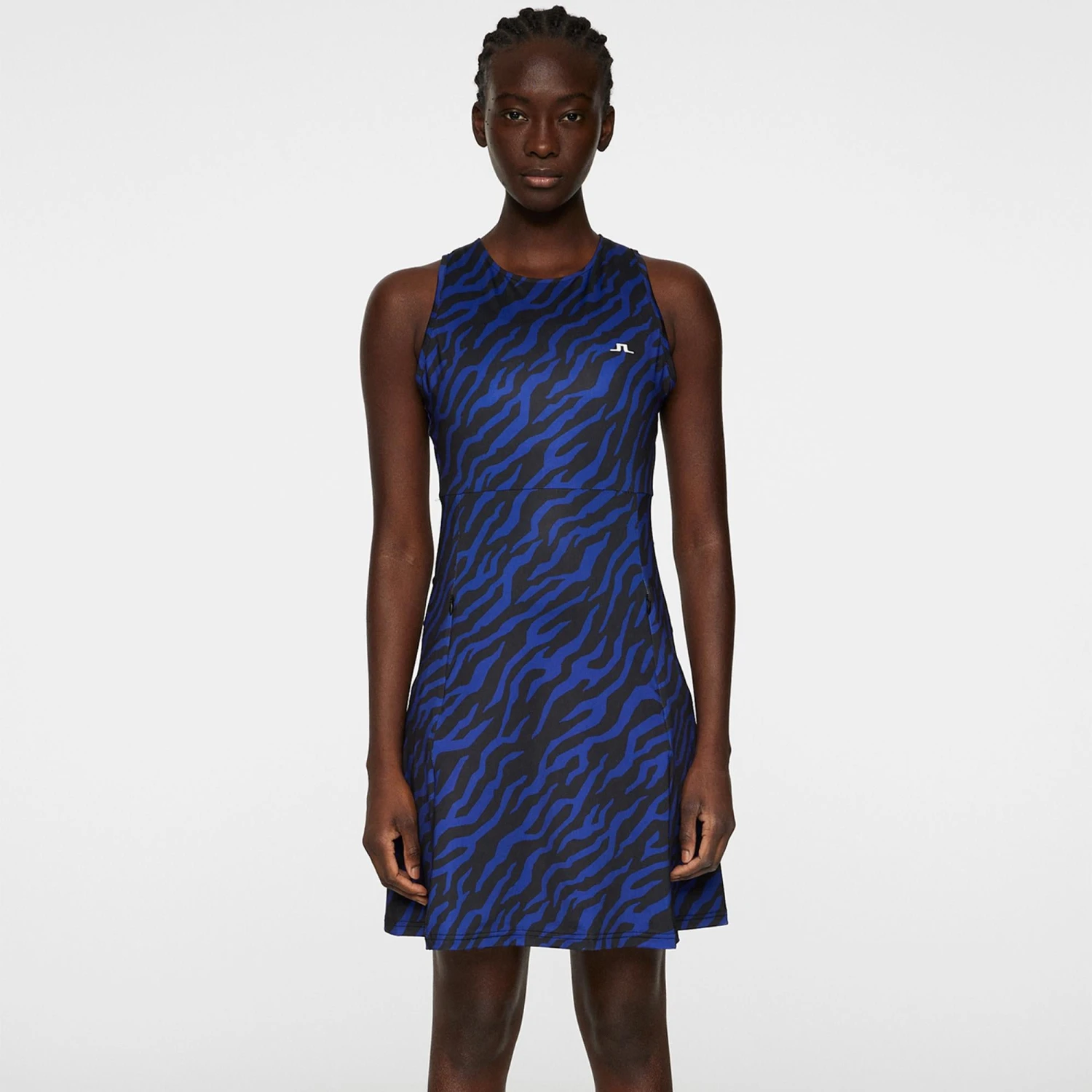 The new style Cora print ladies golf dress from J Lindeberg is cut in a feminine fit with attached shaping inner shorts to achieve a shaping look. Constructed from a fast-drying fabric with cooling effect, the Cora combines style and comfort to provide a striking look that is sure to become a favourite this season. With eye-catching all-over seasonal print and detailing provided by the signature JL Bridge logo at the chest, the Cora is sure to turn heads on the fairways this season.