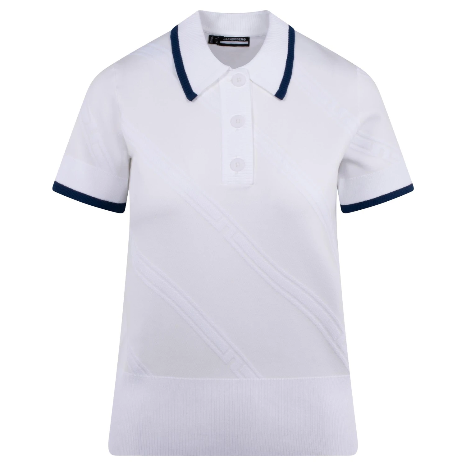The J Lindeberg Feline is a new season sensation with an imaginative twist on a short-sleeved polo/sweater. Combining a sporty look with a textured double knit the Feline guarantees both comfort and performance on the course. With knitted in jacquard artwork providing a unique look which is then finished off by the ribbed collar, cuffs and hem all of which combine to make the Feline versatile, must have polo for the coming season.