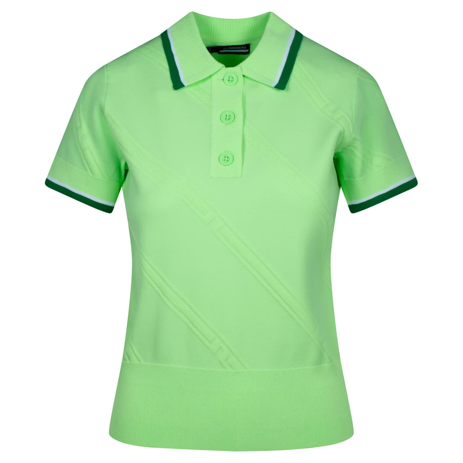 The J Lindeberg Feline is a new season sensation with an imaginative twist on a short sleeved polo/sweater , It has a sporty look with a textured double knit high and low jacquard artwork with ribbed collar , cuffs and hem which makes it a compelling choice
