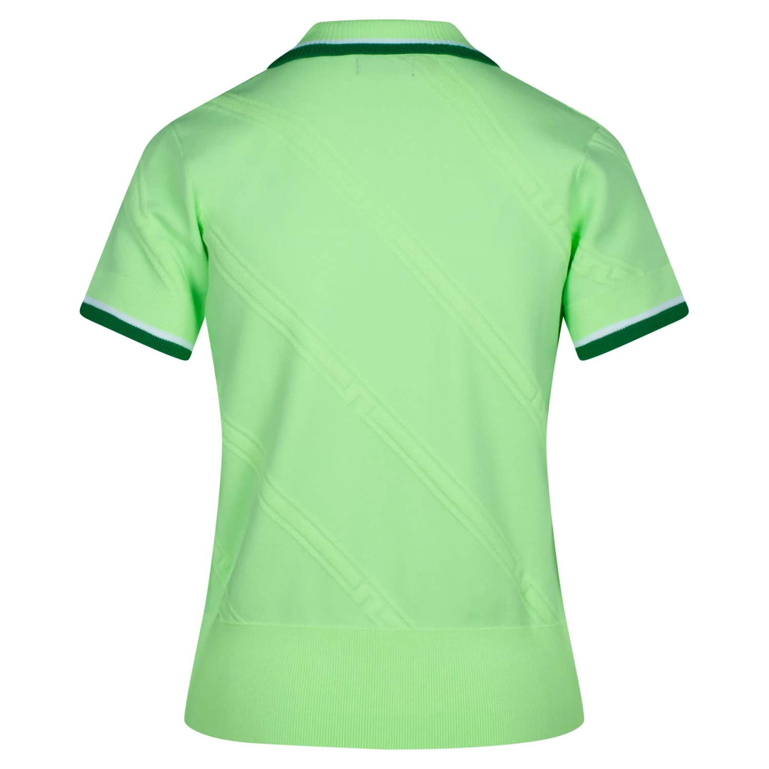 - Ribbed collar with knitted in contrast stripes.
