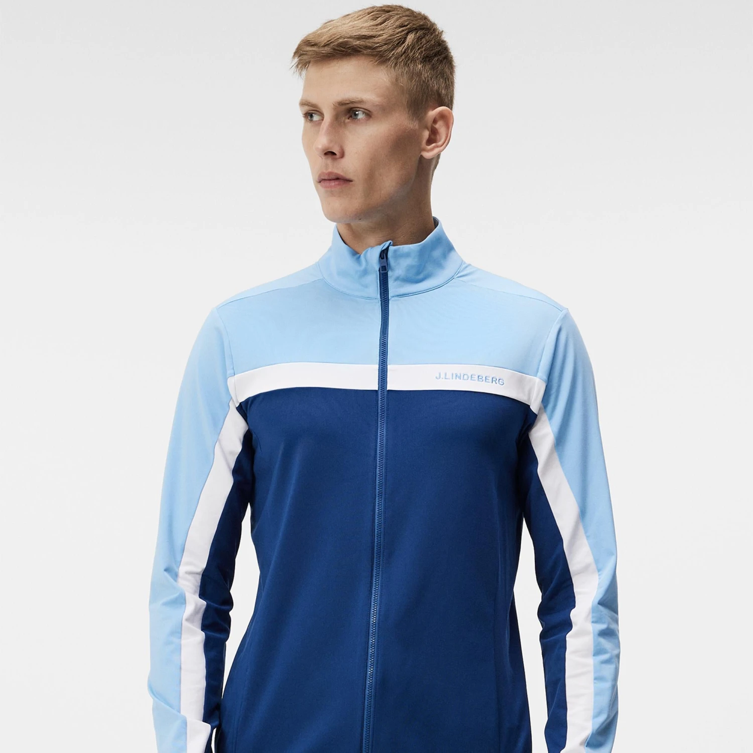 A best-selling style that you can wear both on and off the golf course, the iconic Jarvis Mid Layer from J Lindeberg is the answer to all your sporting demands. Cut from light mid, this lightweight, breathable fabric has a brushed inside for added comfort and warmth. The eye-catching design features a contrast logo at the back and sporty stripes for a signature stylish, sophisticated look, which is finished by embroidered ‘J Lindeberg’ at the left chest. The Jarvis is a stylish, versatile mid-layer that is perfect for use both on and off course all year round.