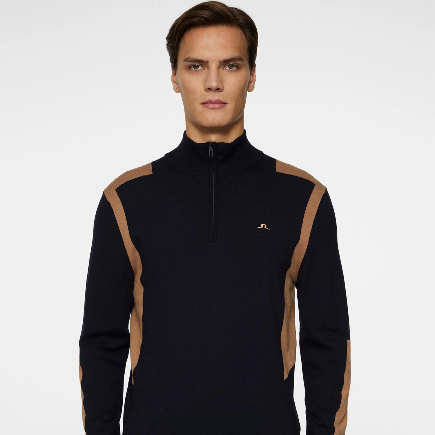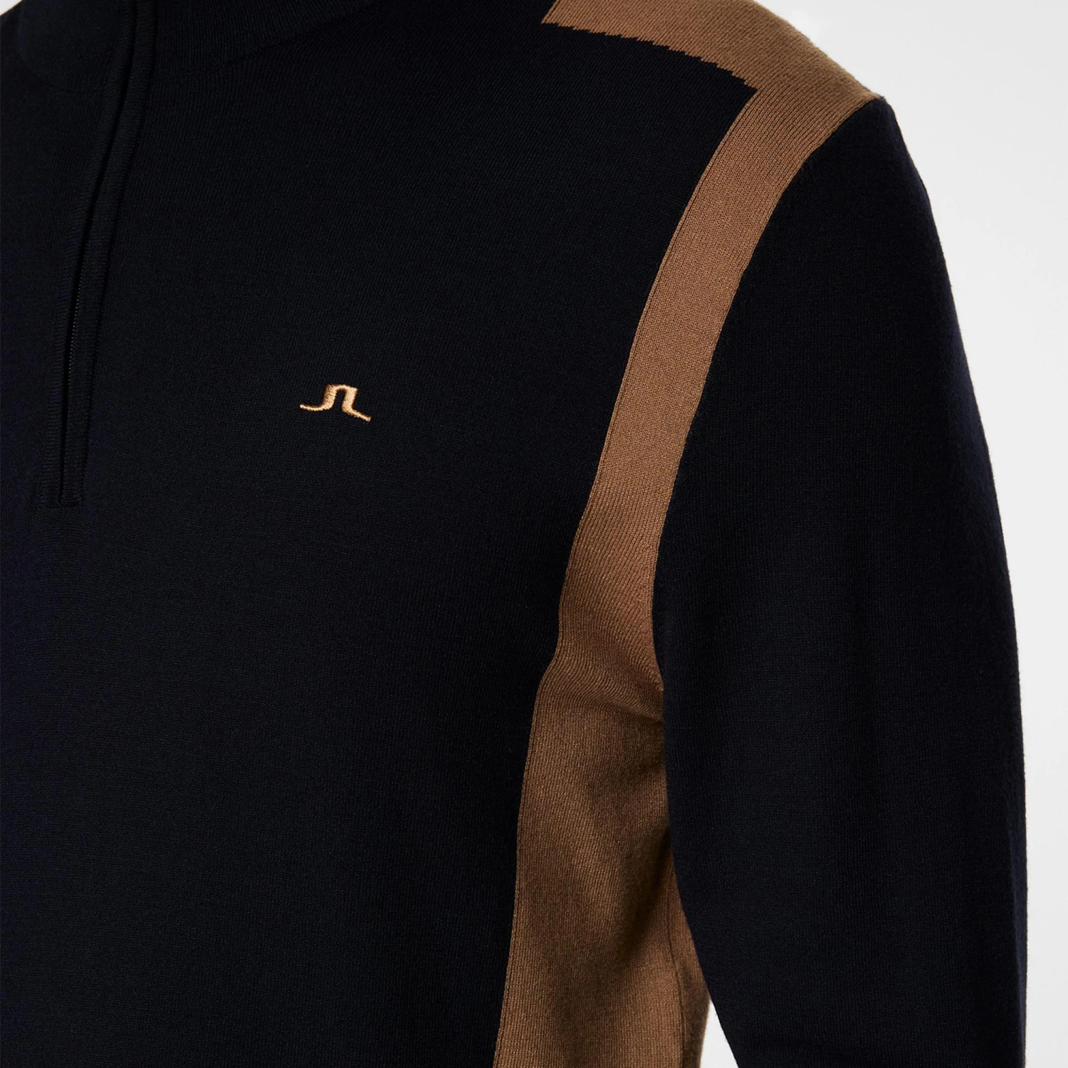 The J Lindeberg Kendrick knitted quarter-zip sweater is the perfect combination of luxury comfort and premium functionality. Perfectly suited for cool days both on the course or when worn casually, this premium knit sweater combines timeless style with modern performance features. Cut in a regular fit, the Kendrick has been crafted from high-quality materials to ensure it offers warmth, comfort, and an eye-catching style thanks to the Intarsia knitted contrast JL Bridge panels and the Bridge logo at the chest, all of which combine to provide a sleek, tailored look that complements any wardrobe. The Kendrick pairs easily with polos & trousers from this seasons J Lindeberg mens clothing collection to provide a statement look on the links.