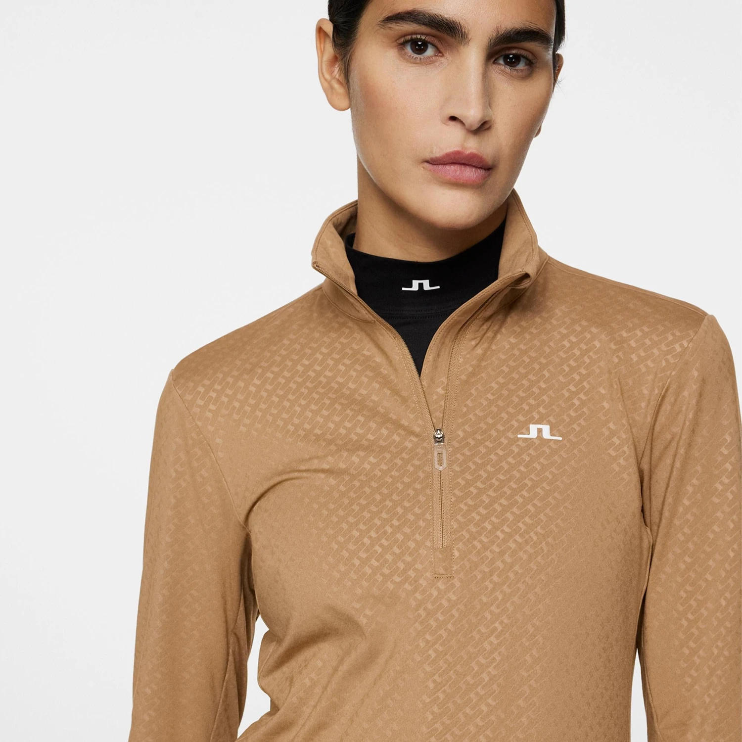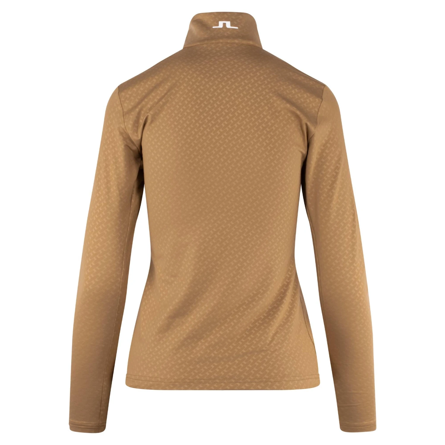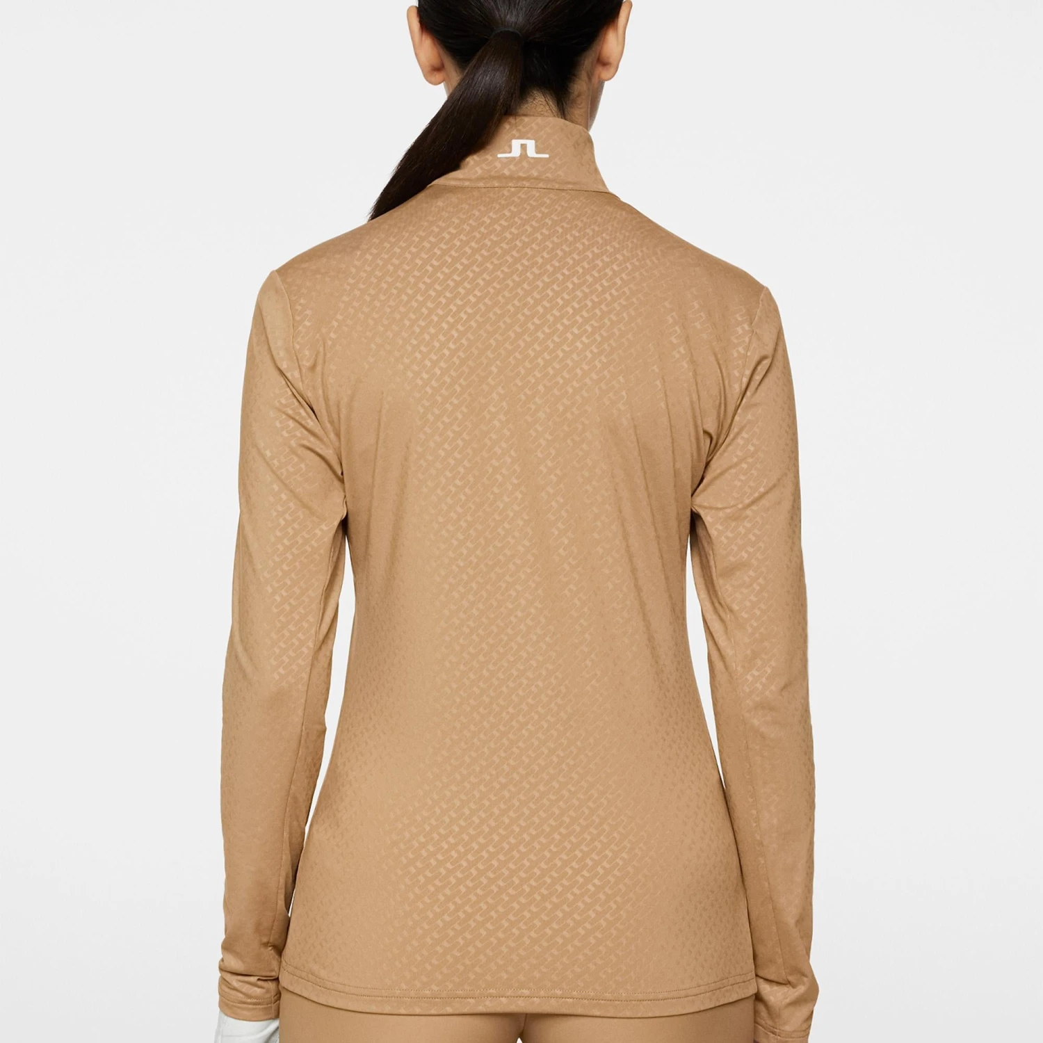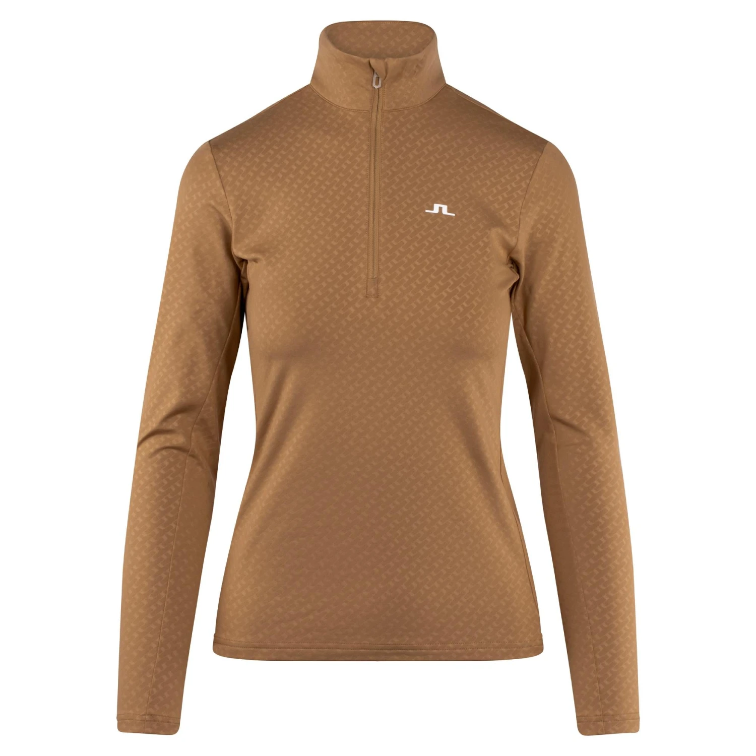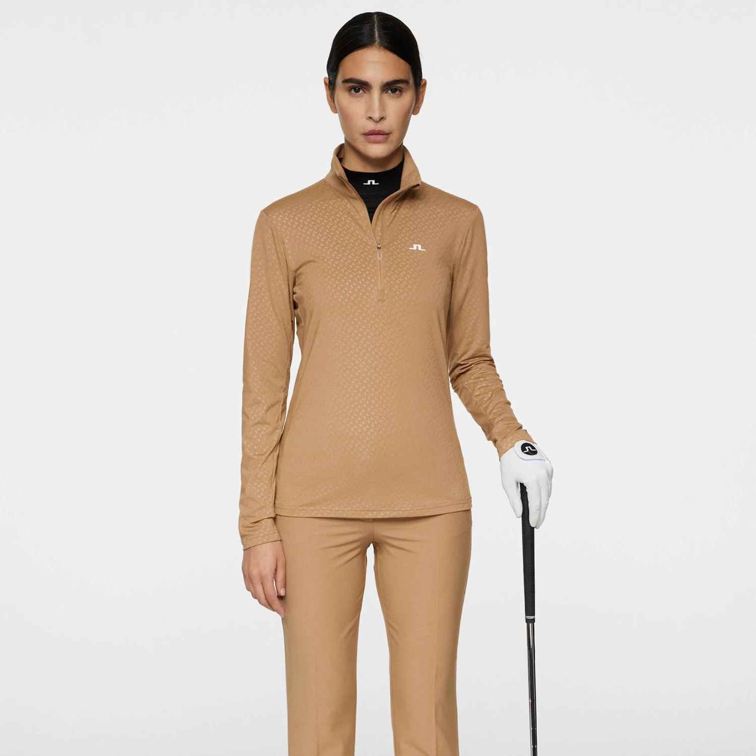 The Lauryn deboss mid layer from J Lindeberg features a half zip and has been crafted from light mid fabric, which ensures the wearer both warmth and comfort. The Lauryn features a stylish tonal debossed all over print with detailing provided by the silicone JL Bridge logo’s which can be found at the chest and the yoke. The versatile Lauryn is sure to become a go-to layering piece whether worn on or away from the golf course and pairs perfectly with other elements from this seasons J Lindeberg ladies golf clothing range.