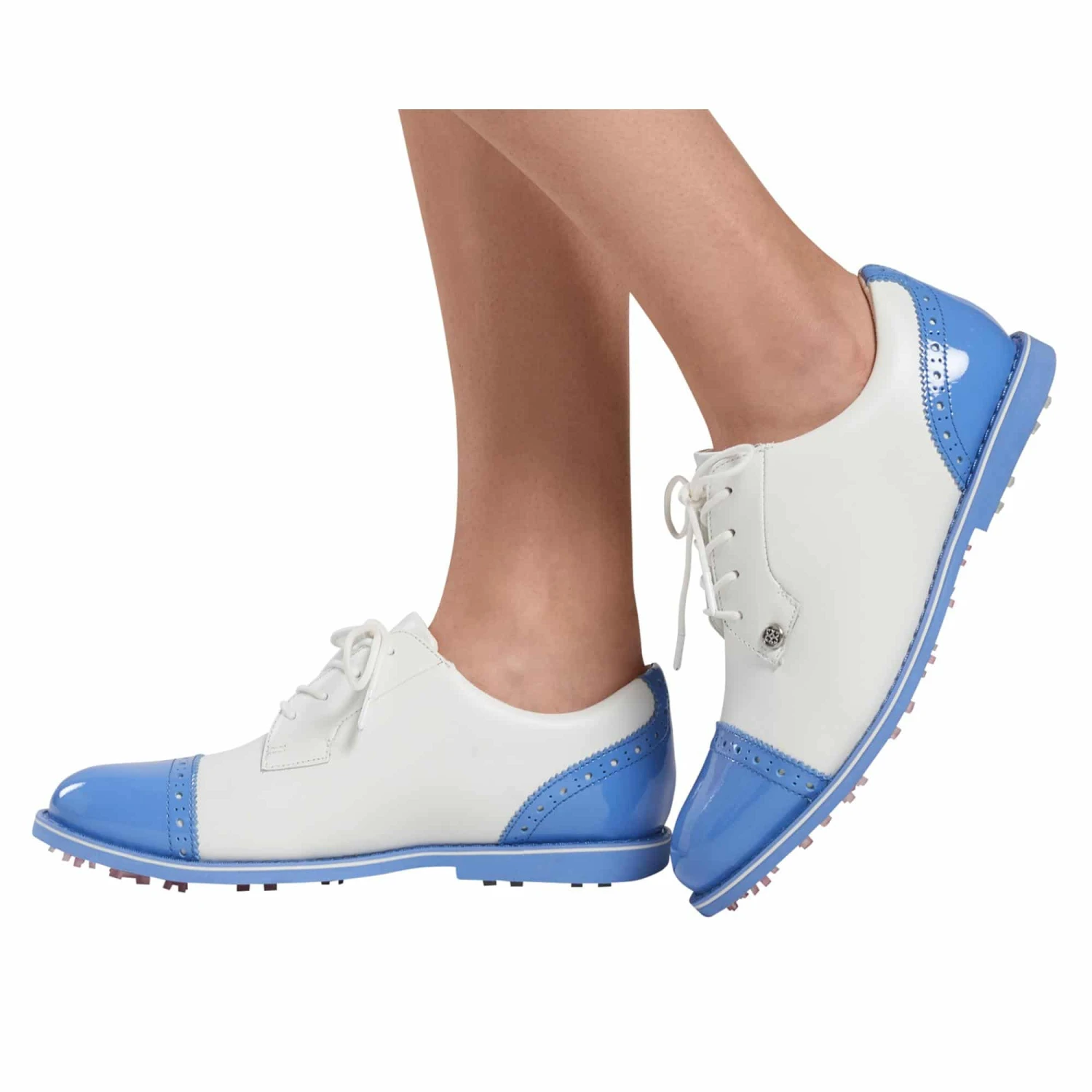 As Stylish as it is comfortable,the Cap Toe Gallivanter Golf Shoe combines an athletic fit with premium waterproof leather in signature G/Fore colourways.This style features a patent leather toe and heel cap with classic broguing, custom designed by G/Fores team of footwear experts, the cap toe boasts an ultra lightweight sole coupled with a bespoke cleat design for optimal on course traction. This shoe sports a washable and anti-microbial,triple density foam cushion footbed for superior comfort along with comfort system technology which allows airflow to feet and provides the ultimate massage for your soles.