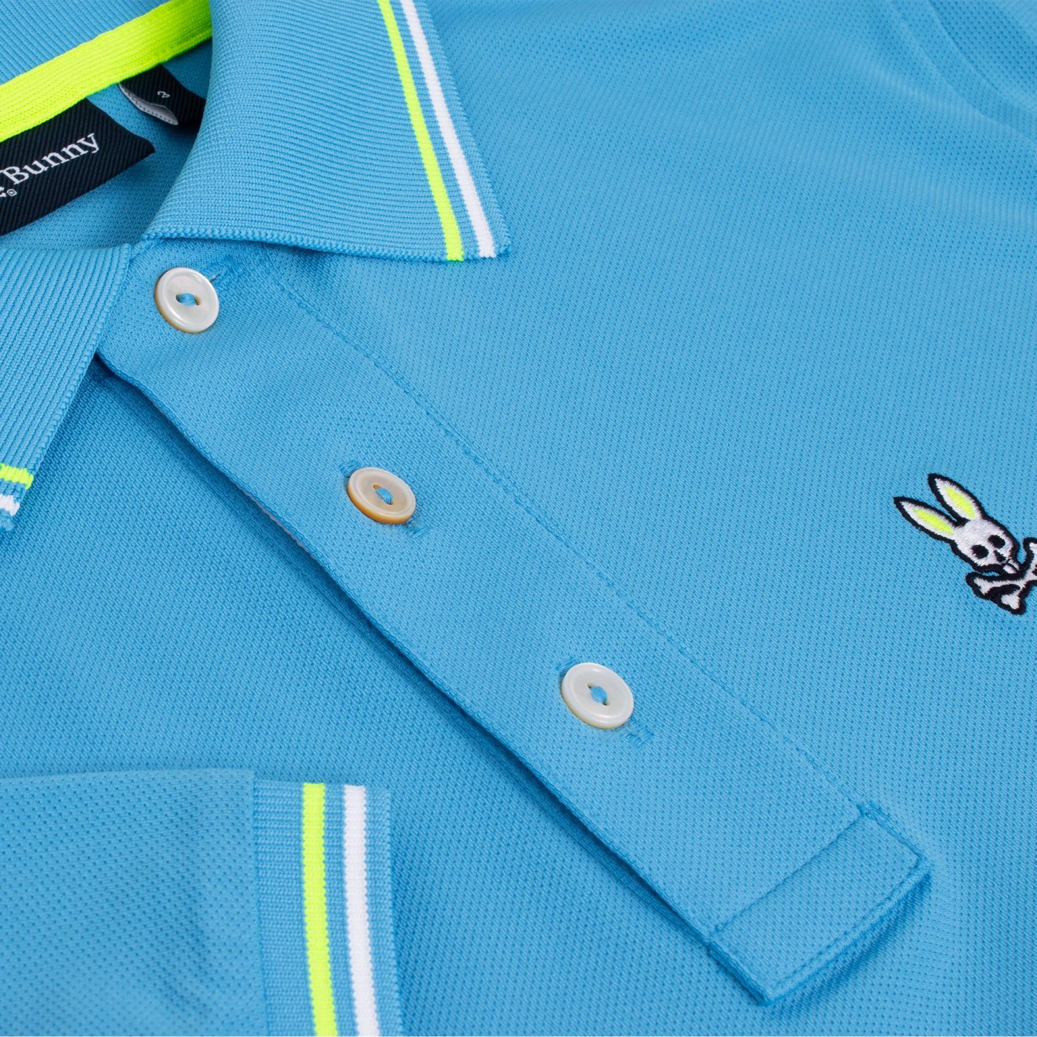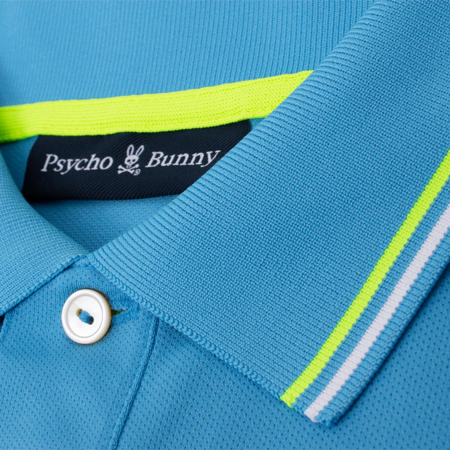 Crafted from a stretch tech piqué, the men’s Alvin sport polo from Psycho Bunny catches the eye with its contrast striped tipping. Fitted with a three-button placket and stripe taped shoulders, the polo finished with the iconic Bunny logo embroidered at the left chest. The Alvin guarantees style as well as comfort and functionality when worn either on or off the golf course.
