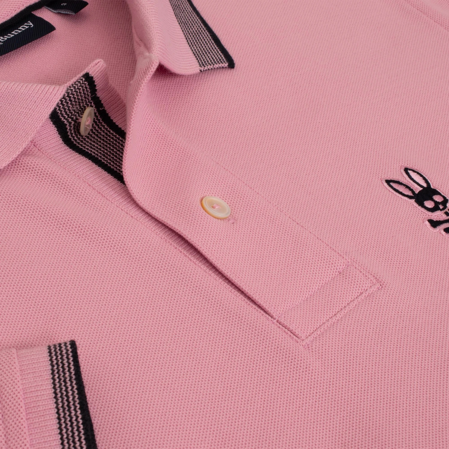 The men’s Queensbury piqué polo is a modern classic polo from Psycho Bunny. This polo combines an amalgamation of luxury Pima cotton piqué, high-grade elements and perfect fit to ensure comfort and elevated style whether worn on or off the golf course. With a look that is further enhanced by the contrast tipping at both the collar and the sleeves, distinctive striped under collar and embroidered Bunny logo at the left chest, the versatile Queensbury is sure to become a wardrobe favourite all year round.
