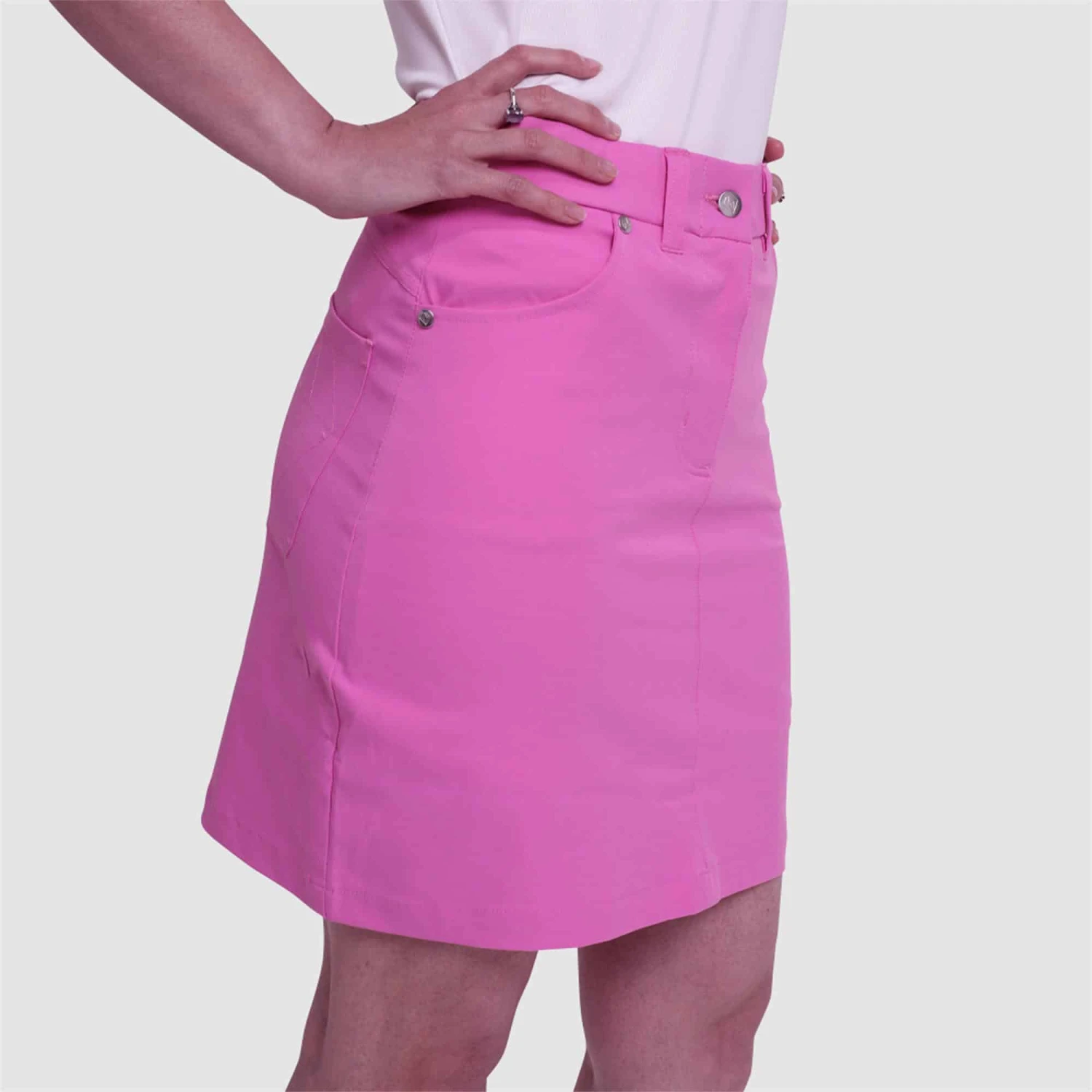 The Calm skort is an essential ladies summer golf skort from the Pure Golf SS23 collection. Crafted from 4-way stretch & quick dry material, this skort is both practical and comfortable to wear on and off the course. Specifically designed to integrate with other garments from the spring/summer collection, pair the Calm skort with partial print for an extra touch of personality or mix it up with a full pattern polo for a great look both on and off the course this summer!