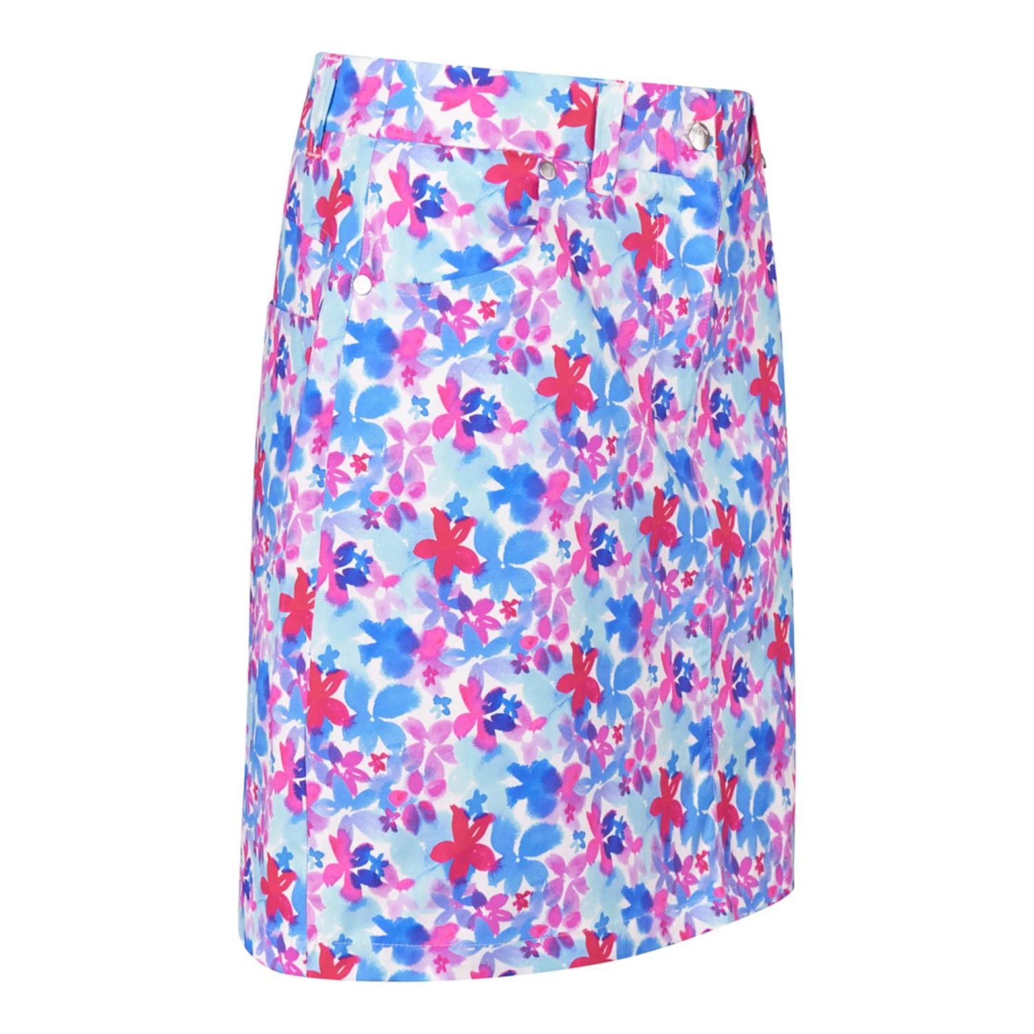 The Pure Golf Clarity skort is a Full print skort from the Watercolour Daydream collection. This skort would look great with a plain top for a balanced look, it also features a partial print which provides an extra touch of personality. Qualities including Anti-Crease, 4-way stretch & quick dry material make this skort practical and comfortable to wear on and off the course. It has been specifically designed to integrate seamlessly with other garments from the Watercolour Daydream range, especially the Spirit sleeveless polo.