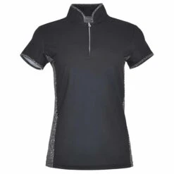 Holly is a partially printed cap sleeve polo shirt made from anti-static, anti-crease, 4 way stretch and quick drying fabric with built in UVA+UVB sun protection with UPF 35 to block harmful rays on the course.