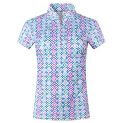 The Pure Golf Rise cap sleeve top is a versatile full print, cap sleeve zip top made from anti-static, anti-crease, 4-way stretch and quick drying fabric with built in UVA+UVB sun protection with UPF 35 to block harmful rays on the course. This top will look great worn with either plain bottoms or a patterned skort subject to the wearer’s taste. It has been specifically designed to integrate seamlessly with the Geoflower fashion collection as well as other white, navy, ocean blue and pale blue pieces from the SS23 Essentials range.