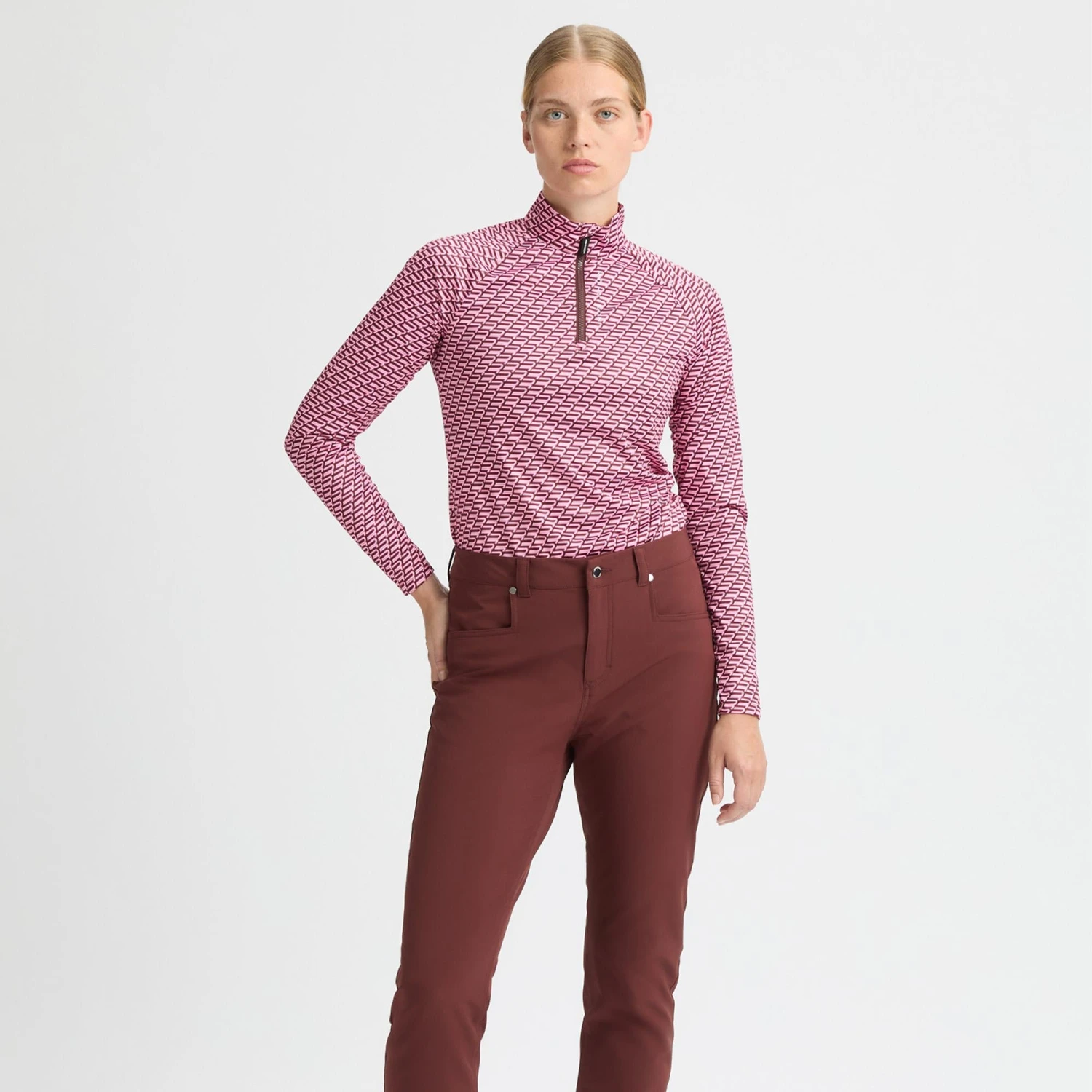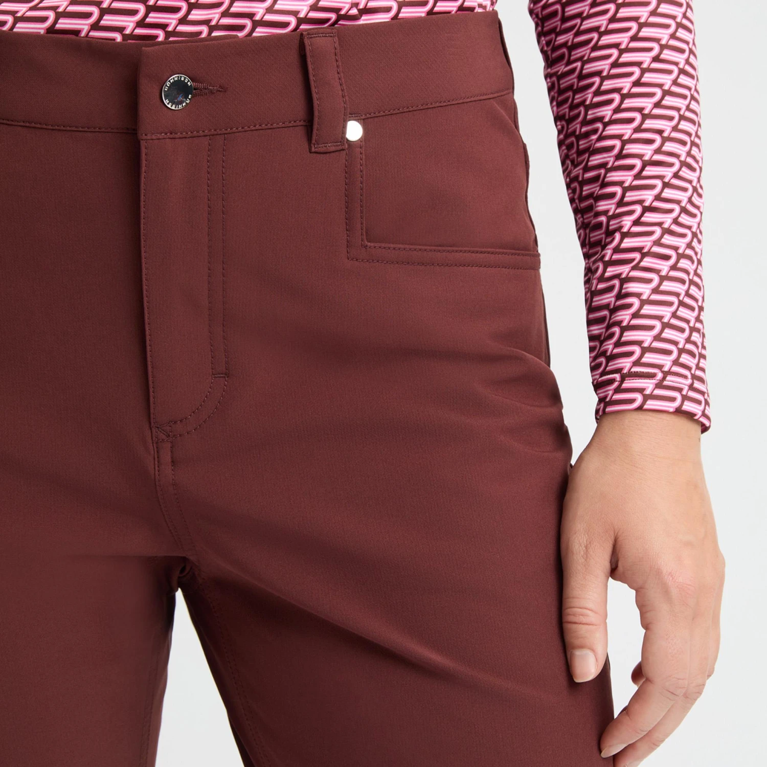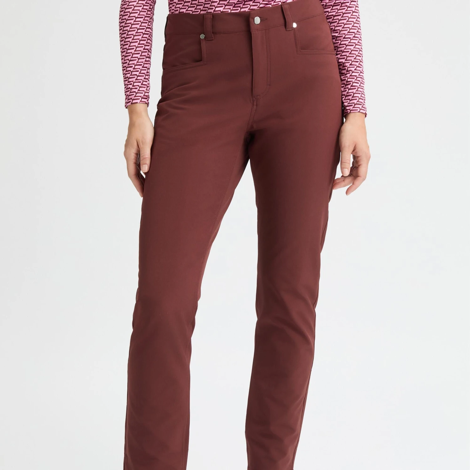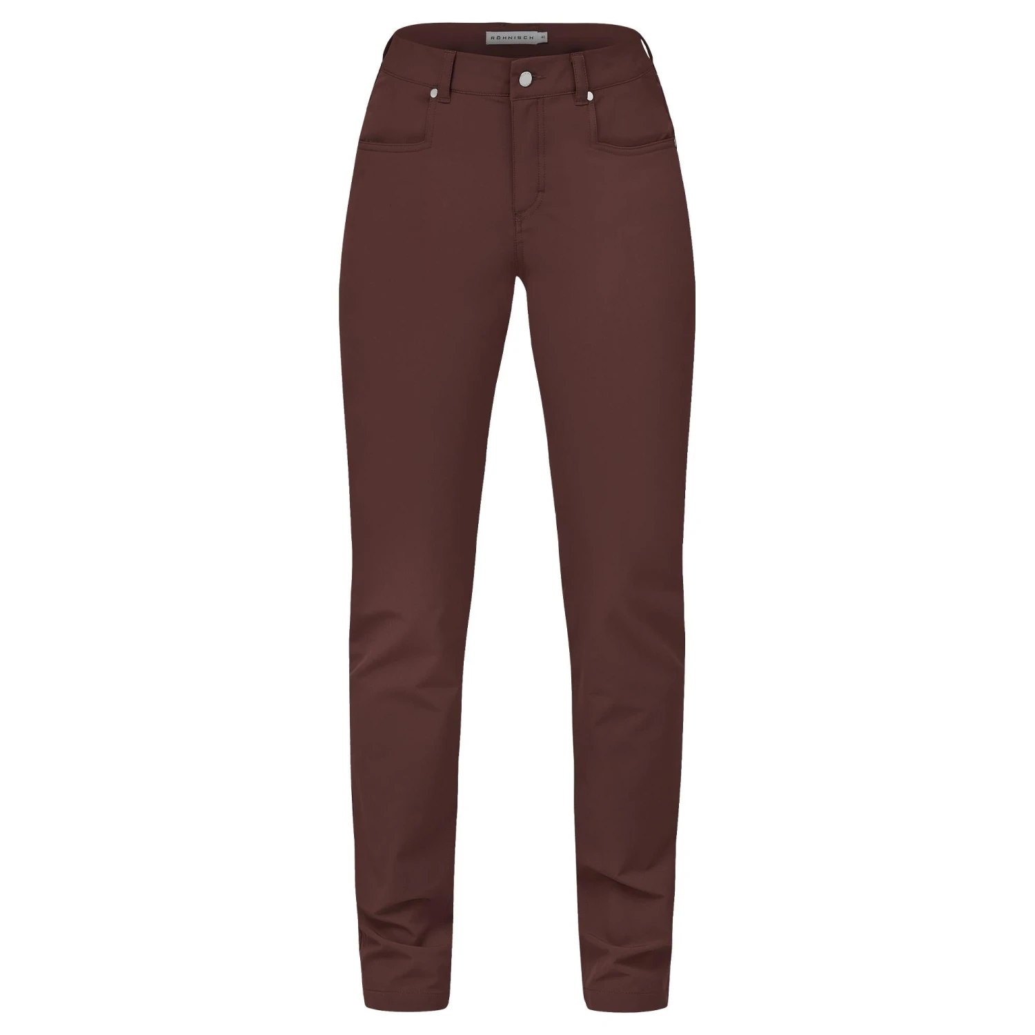 The newest addition to the Röhnisch winter trouser collection – the Chie brushed winter golf trousers have been made in a super soft twill fabric with a brushed and warming inside, ensuring both comfort and warmth whether worn on or off the golf course. Equipped with a 4-way stretch, quick-drying and wrinkle-free functions, this versatile pant is perfect for cooler conditions. With a feel that is lighter than most winter pants, the Chie brushed trousers guarantee to be equally as warm & wind resistant than other heavier, more bulky ladies winter trousers. The Chie brushed winter trousers have been made for a regular fit with slim legs and have an inseam measurement 76 cm/30” in size 40 (UK M/12. A sustainable choice, these trousers have been constructed from 89% recycled polyester