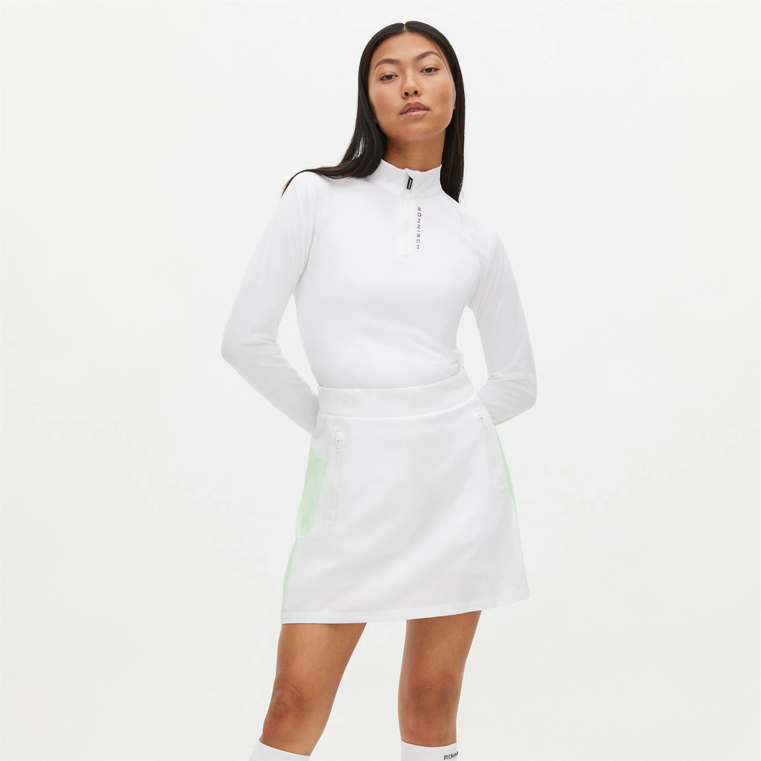 The Erin skort is a tailored, Classic design made from a 2 way stretch fabric. The contrasting panels in this design are extremely flattering and the regular fit, pull on design will make this extremely smart skort a go-to garment. The Erin also has 2 zip front pockets and tonal inner shorts which provide additional functionality. The wind resistant fabric makes is made from 92% recycled Polyester making this skort a fully sustainable choice.