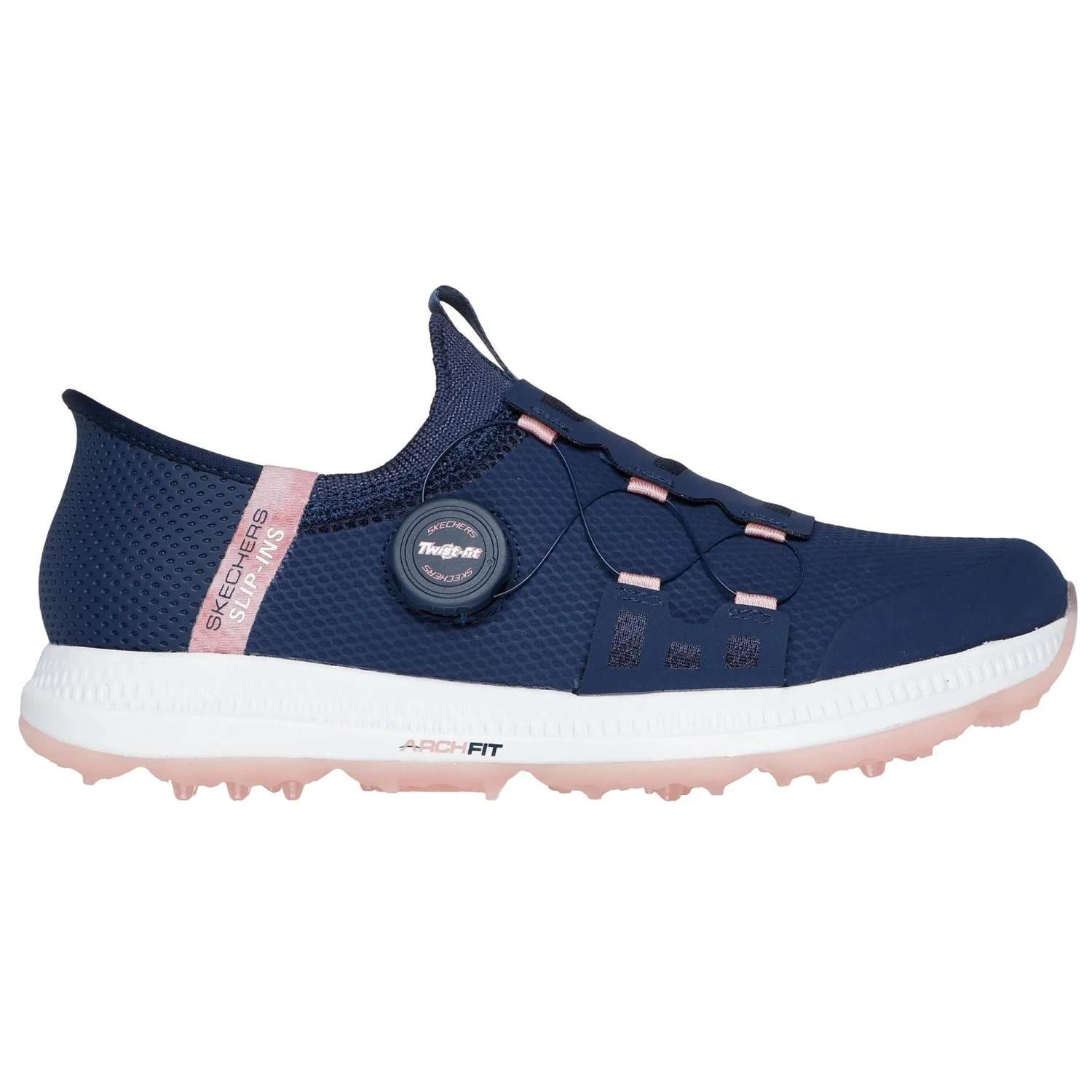 Support your swing with easy-wearing comfort in the Skechers Slip-ins®: GO GOLF Elite 5™ – Slip ‘In. Made with Skechers exclusive Heel Pillow™, this waterproof golf design features a synthetic upper with a unique Twist Fit™ closure, a removable Arch Fit® insole and GRIPFLEX™ spikeless traction outsole for stability whilst you swing. These eye-catching ladies golf shoes provide a a stylish look sure to be the envy of your fourball.