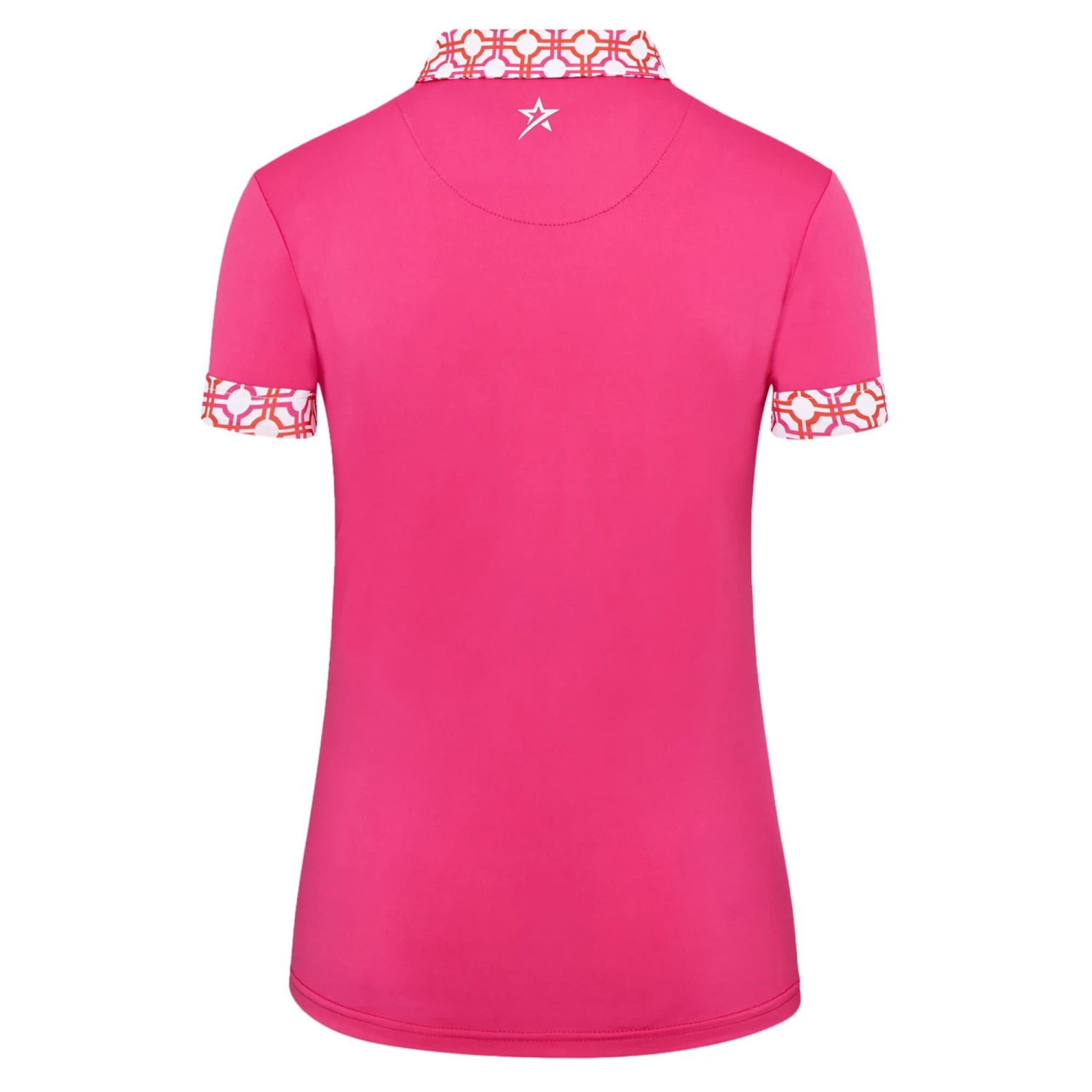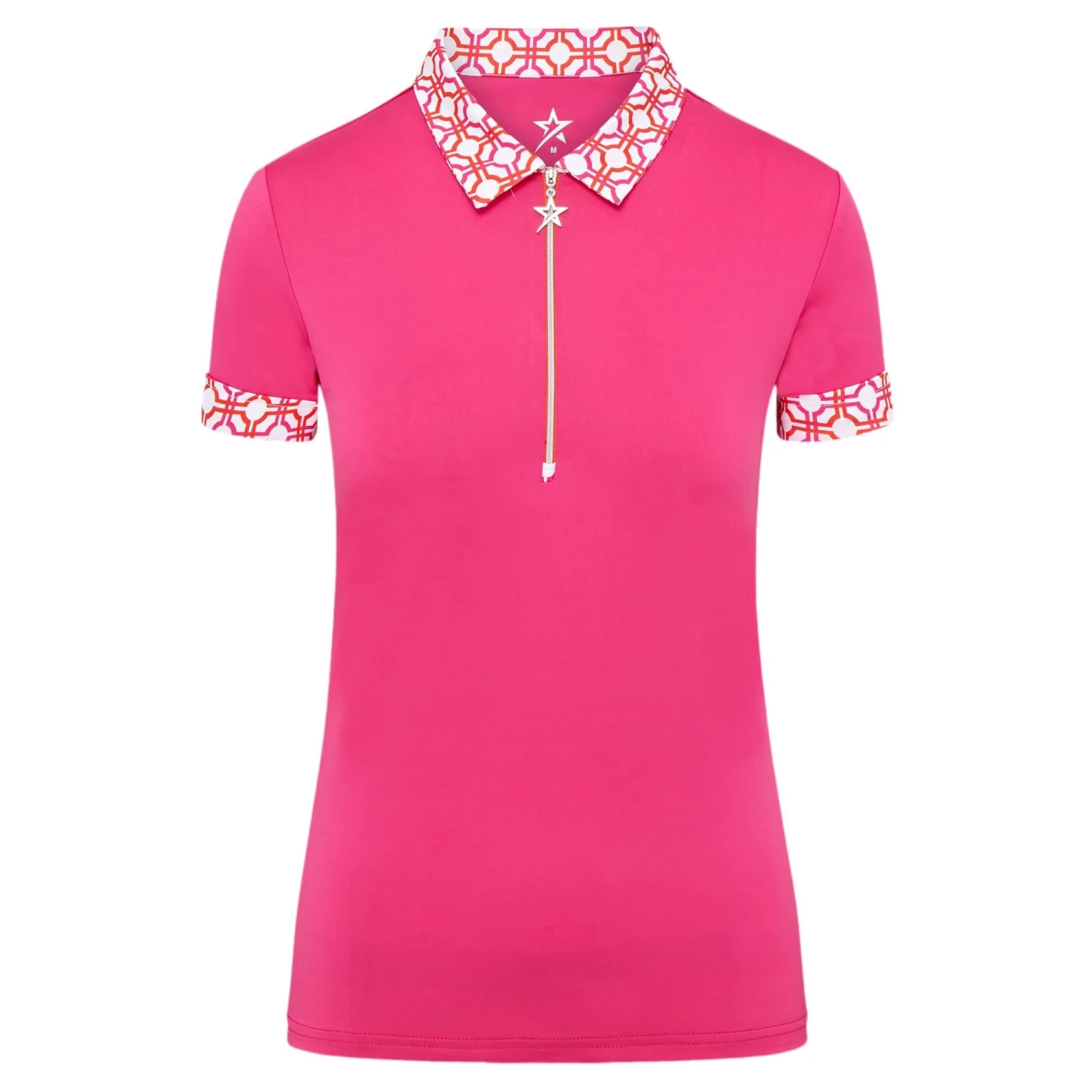 The Alice cap sleeve polo from Swing Out Sister provides signature style as well as the comfort required for warmer days on the course. Crafted from a breathable, moisture wicking 4-way stretch material for optimum comfort levels whilst you swing, the Alice also features seasonal print at both the cuffs and collar for a stand-out look. With a printed Swing out Sister logo at the neck and the branded zipper puller elevating the detailing, the Alice is sure to be a popular choice this season whether worn with shorts or a skort.