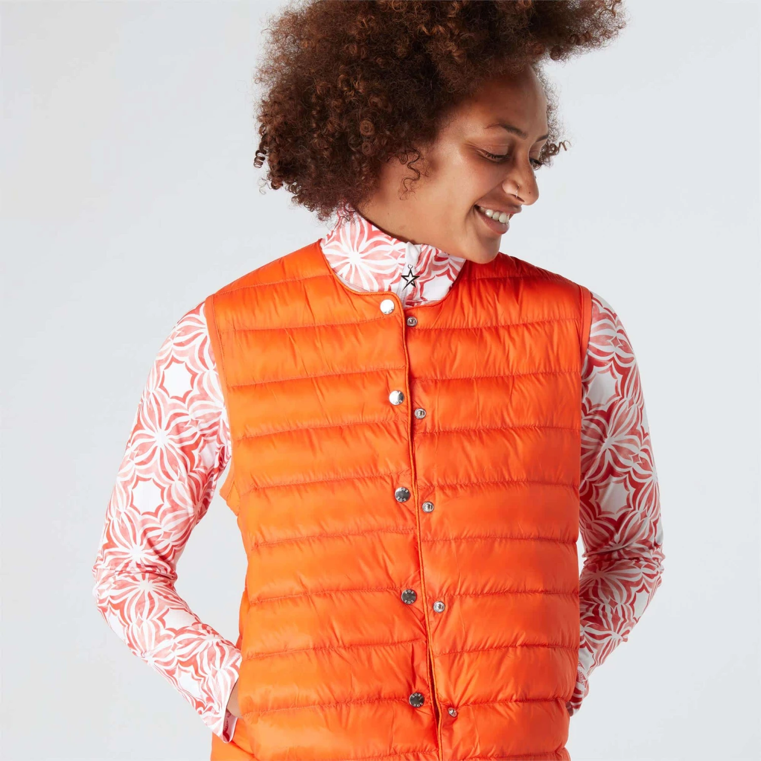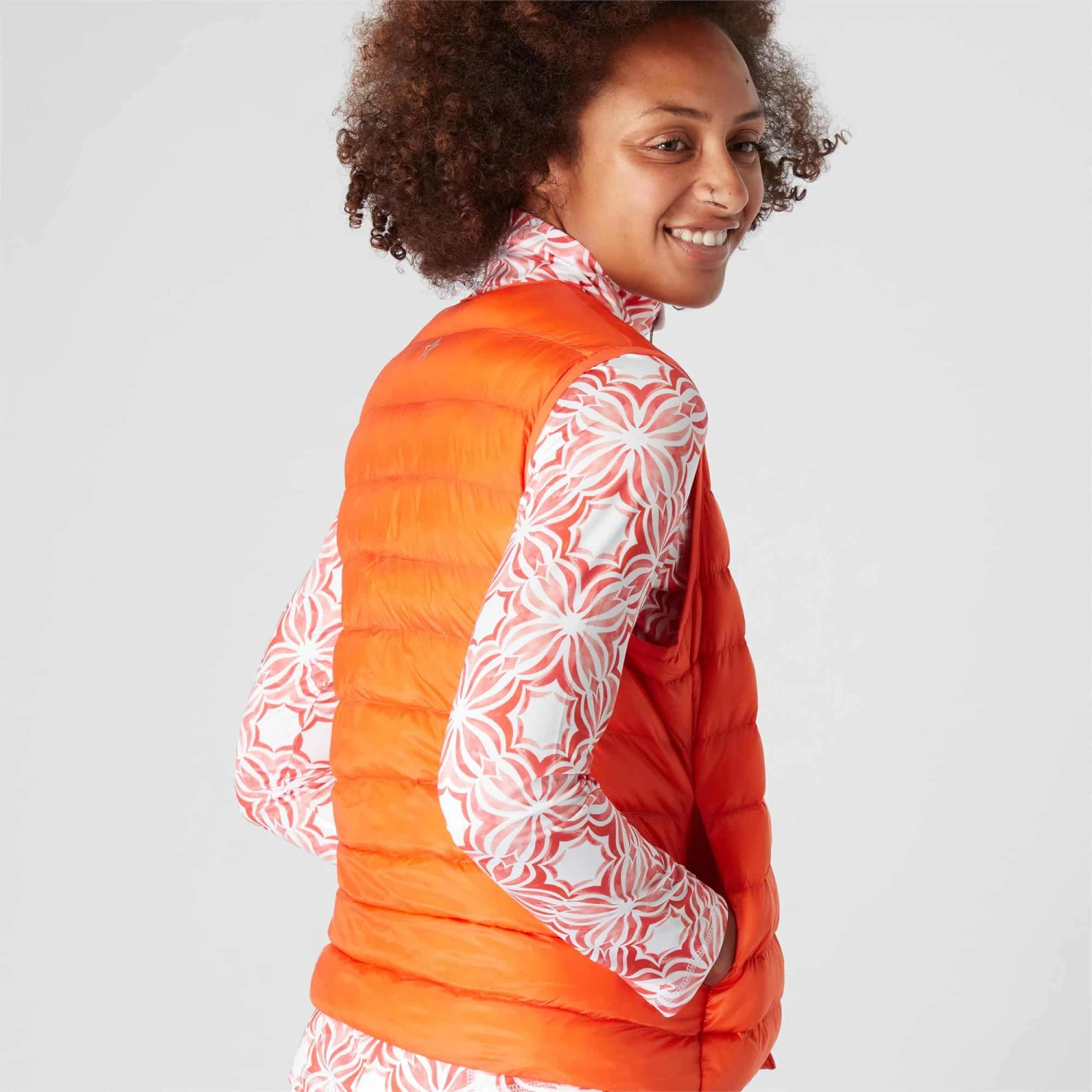 The lightweight Penny active vest is an essential for any lady golfer. Equally at home both on and off the course, the regular-fitting Penny is breathable as well as warm thanks to the light man-made down filling. With detailing provided by the 6 branded buttons at the front and additional functionality from the deep pockets, the Penny vest is sure to become a key garment in any lady golfer’s wardrobe!