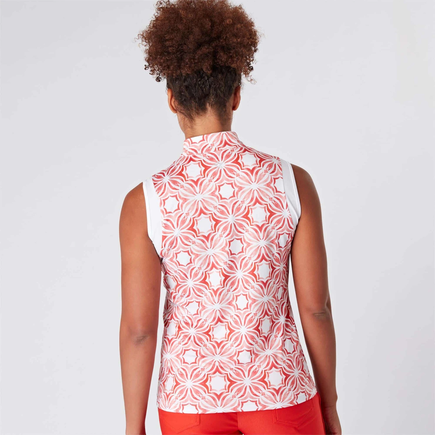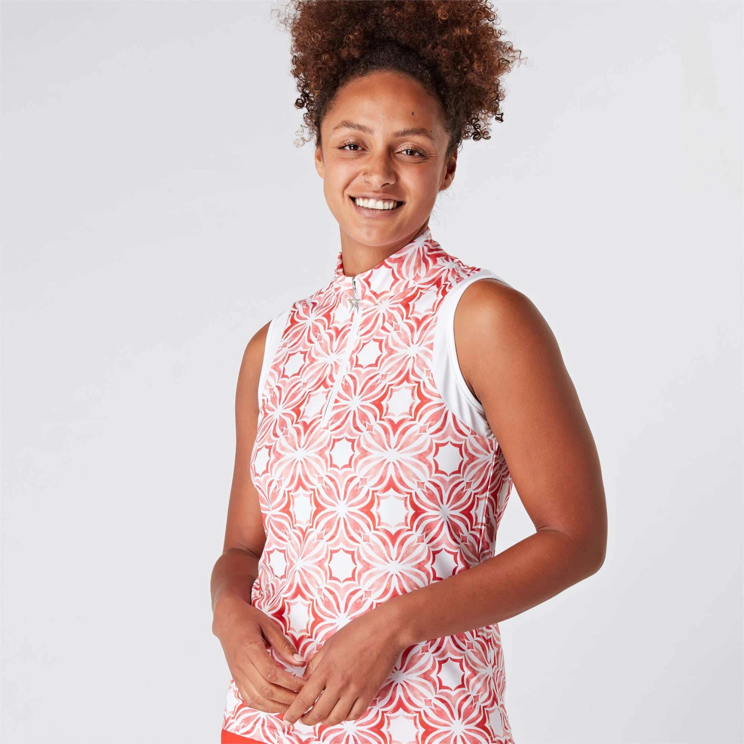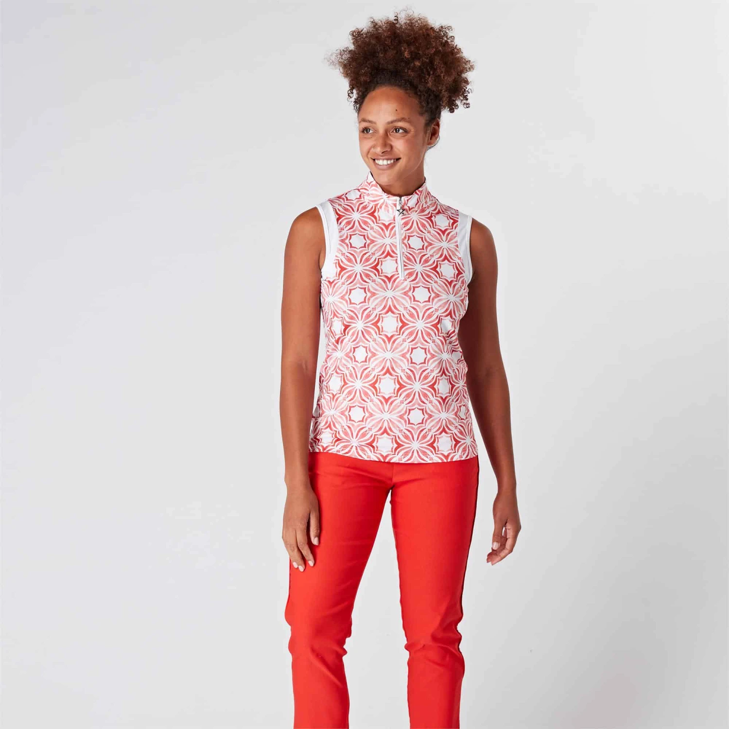 The Serena sleeveless polo shirt combines all the qualities required by the serious lady golfer. This stretchy, comfortable, breathable polo offers moisture wicking qualities which further enhance comfort levels as well as SPF protection (+30) from the sun in warmer conditions. The stylish all over design gives the Serena a unique and eye-catching look, with additional style points provided by the branded puller on the long zip at the front of the polo. The Serena is a polo that is a must-have in any lady golfers wardrobe this summer!