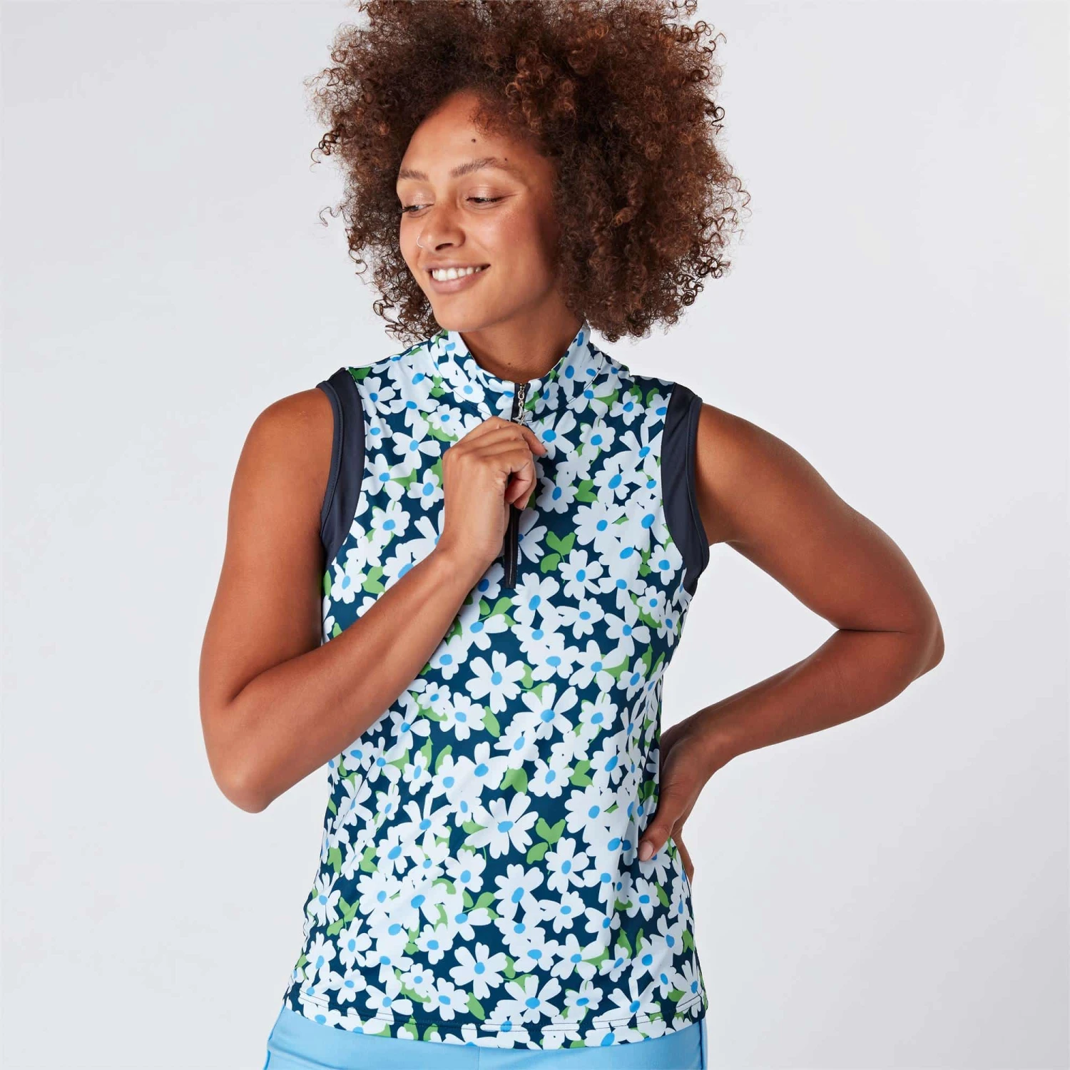 The Serena sleeveless polo shirt combines all the qualities required by the serious lady golfer. This stretchy, comfortable, breathable polo offers moisture wicking qualities which further enhance comfort levels as well as SPF protection (+30) from the sun in warmer conditions. The stylish all over design gives the Serena a unique and eye-catching look, with additional style points provided by the branded puller on the long zip at the front of the polo. The Serena is a polo that is a must-have in any lady golfers wardrobe this summer!